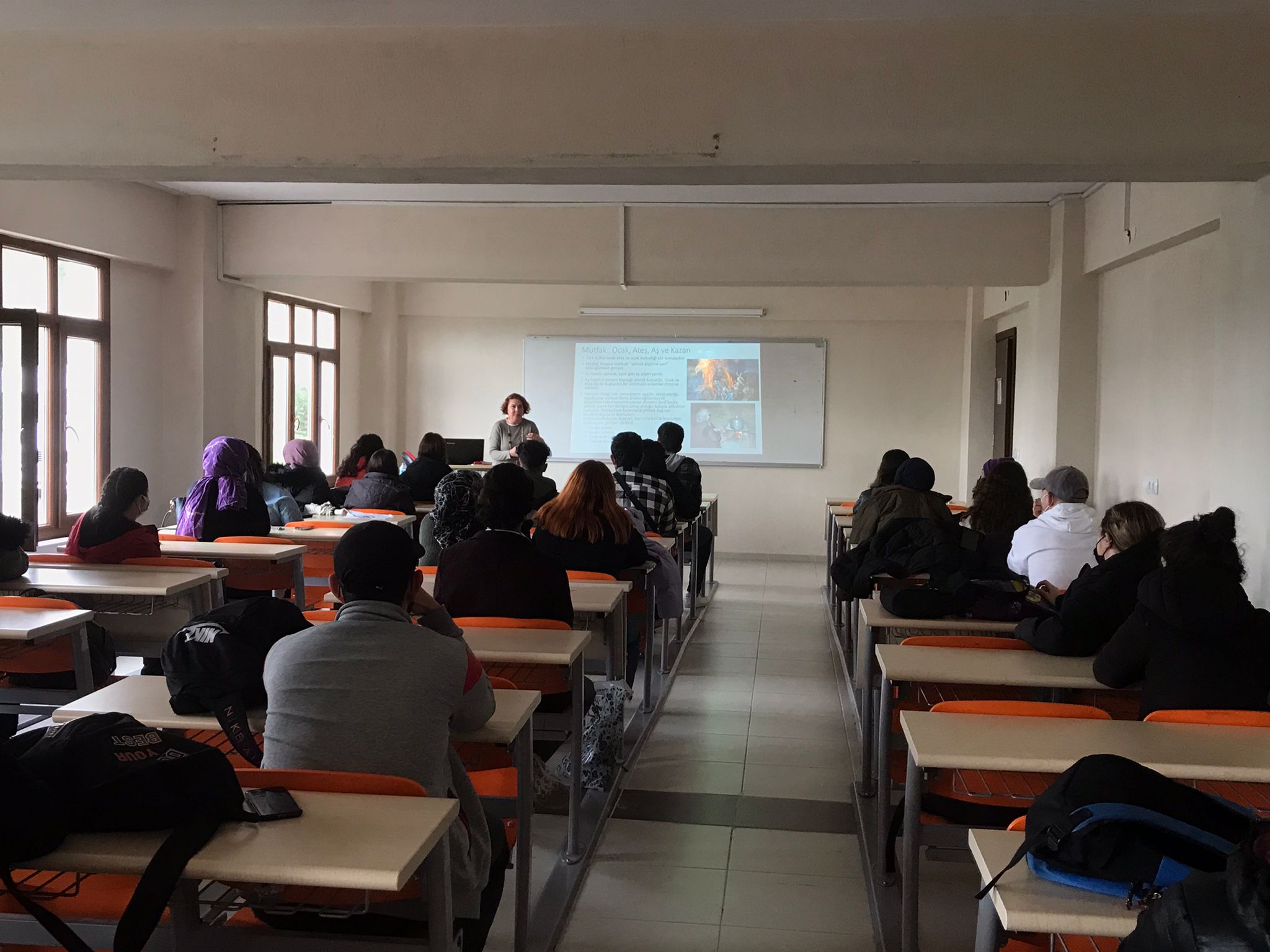 23 Åžubat 2022 tarihinde Türk Mutfak Kültürü dersi kapsamında üniversitemiz Turizm Fakültesi ÖÄŸretim Üyesi Doç. Dr. BaÅŸak Burcu Eke hocamızın “Selçuklu Mutfak Kültürü” semineri gerçekleÅŸtirildi. AÅŸçılık ve İkram Hizmetleri öÄŸrencileri ile bölüm öÄŸretim elemanlarının katıldığı etkinlikte Selçuklu mutfağı ile hangi coÄŸrafyanın kastedildiÄŸi, coÄŸrafyanın mutfak kültürüne etkileri, Selçuklu mutfağının temel özellikleri, dönem günlerinde mutfak ve o dönemde kullanılan kaplar misafir öÄŸretim üyemiz tarafından anlatıldı. Seminer bitiminde Yüksekokul müdürümüz Doç. Dr. Aziz Bostan tarafından misafir hocamıza teÅŸekkür belgesi takdim edilerek, öÄŸrencilerimiz ve katılımcı hocalarımızla hatıra fotoÄŸrafları çekildi.