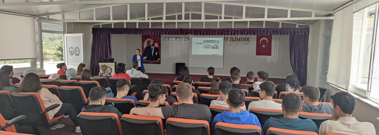Söke Anadolu Lisesi Müdürü Sayın Ayhan TÜRK, Sayın Öğretmenler Dudugül YILDIZ ve Esma UYAROĞLU, Okul Aile Birliği Üyesi Sayın Emine KARABURÇAK ve 40 kişilik öğrenci grubu ile 22 Nisan 2024 tarihinde okulumuza ziyaret gerçekleştirmişlerdir. (YKS) Yükseköğretime Geçiş Sınavları aşamasında okulumuzu yakından tanımak ve bölümlerimiz hakkında bilgi edinmek amacıyla kampüsümüze gelen Söke Anadolu Lisesi öğrencileri Üniversite’mizdeki ortamı yakından tanıma olanağı bulmuşlardır. ADÜ Kuşadası Meslek Yüksekokulu Müdürümüz Sayın Prof. Dr. Pınar ALTIOK GÜREL tarafından konuklarımıza okulumuzla ilgili bilgilerin verildiği ziyarette, Müdür Yardımcılarımız Sayın Öğr. Gör. Dr. Ahu SEZGİN ve Sayın Öğr. Gör. Nurcan YILMAZ, MYO Sekreterimiz Sayın Mustafa HAYIT ve idari personelimiz hazır bulunmuşlardır. Konferans salonumuzda Müdür Yardımcımız Sayın Öğr. Gör. Nurcan YILMAZ’ın okulumuzda bulunan programlar, idari ve akademik kadrolarımız, fiziksel altyapımız, teknik olanaklarımız, okulumuzdaki sosyal ve sportif faaliyetler, Erasmus faaliyetlerimiz, sektörel işbirliklerimiz, staj imkânlarımız, mezunlarımızın çalışma alanları, bölümlerimizin iş bulma avantajları, katıldığımız etkinlikler, düzenlediğimiz sosyal sorumluluk projeleri, gezi programları gibi pek çok konuyu içeren geniş kapsamlı sunumuyla detaylı bir şekilde bilgilendirilen konuklarımızla, merak ettikleri konularda sohbet edilerek soruları cevaplandırılmıştır. Ardından, amfilerimiz, sınıflarımız, kütüphanemiz, bilgisayar laboratuarımız, endüstriyel mutfaklarımız, çok amaçlı spor alanımız, kampüs bahçemizde yer alan sosyal alanlarımız yerinde tanıtılmıştır.