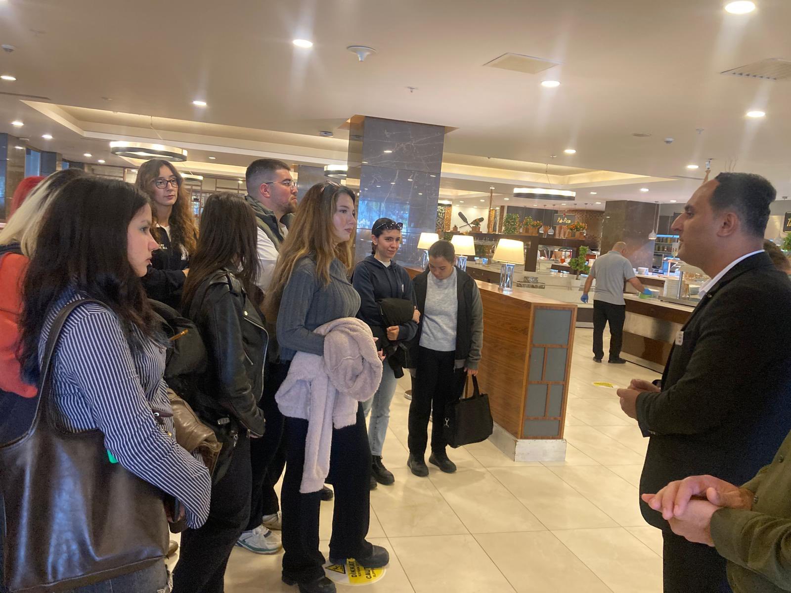 Adnan Menderes Üniversitesi Kuşadası Davutlar Meslek Yüksekokulu Turizm ve Otel İşletmeciliği Programı 1. sınıf öğrencileri, Otel İşlemeciliği dersi kapsamında Öğretim Görevlisi Nurcan YILMAZ ve Program Koordinatörü Öğretim Üyesi Dr. Erhan COŞKUN eşliğinde Ramada Resort By Wyndham Kuşadası Otelini ziyaret etti. Gerçekleştirilen teknik gezide, otelin genel tanıtımı yapılmış; ilgili departman yöneticileri tarafından kendi birimleri hakkında detaylı bilgiler sunulmuştur. Öğrencilerimiz, otel bünyesindeki çeşitli departmanları yerinde inceleme fırsatı bularak sektörel uygulamalar hakkında doğrudan gözlem yapma imkânı elde etmişlerdir. Bu değerli eğitim fırsatını sağlayan başta Ramada Resort By Wyndham Kuşadası Oteli yönetimine ve ziyaret süresince bizlere rehberlik eden tüm departman yöneticilerine teşekkür ederiz.