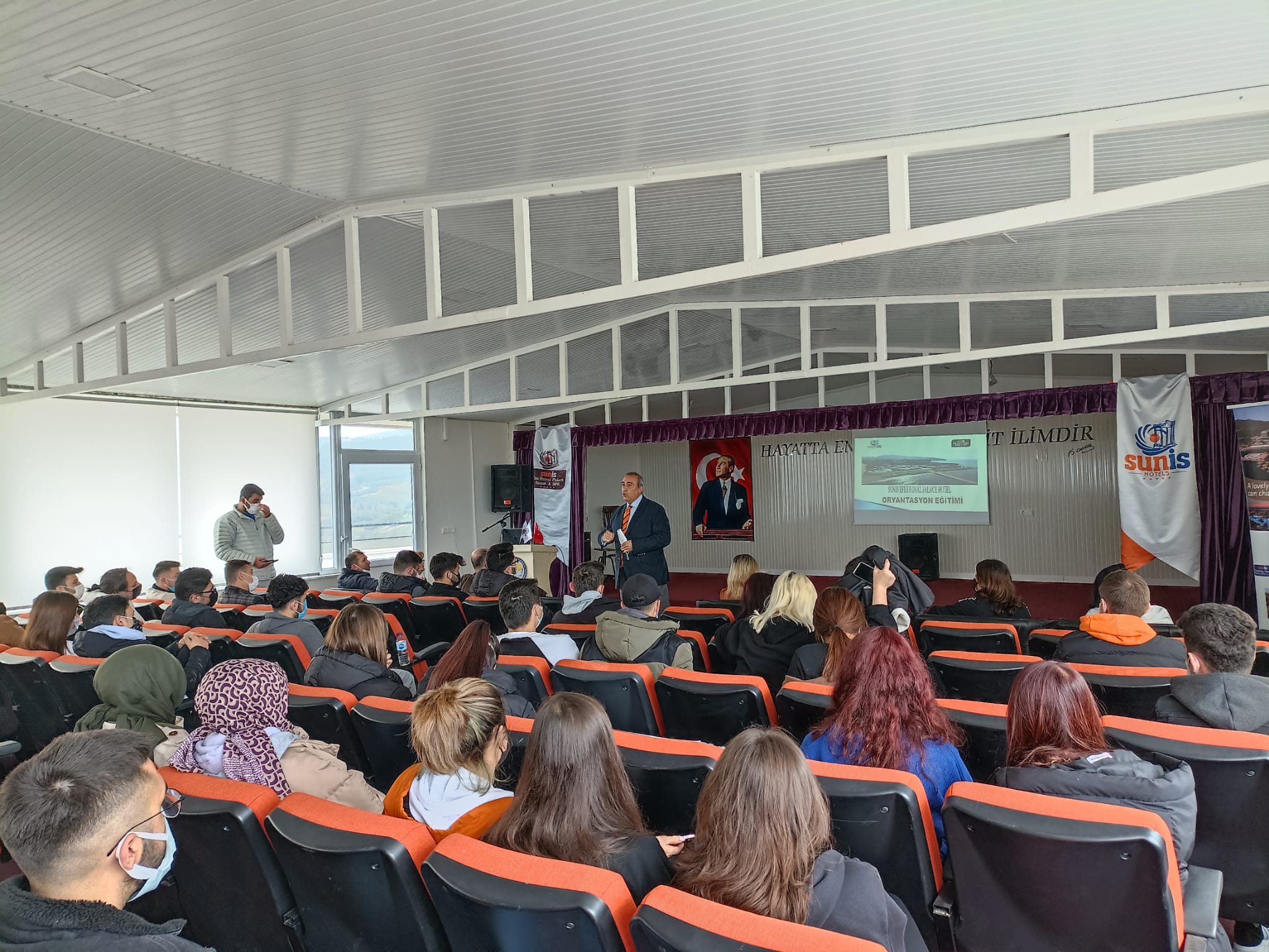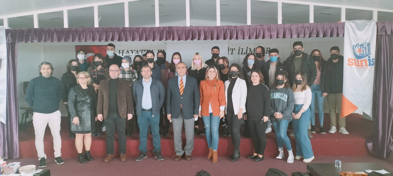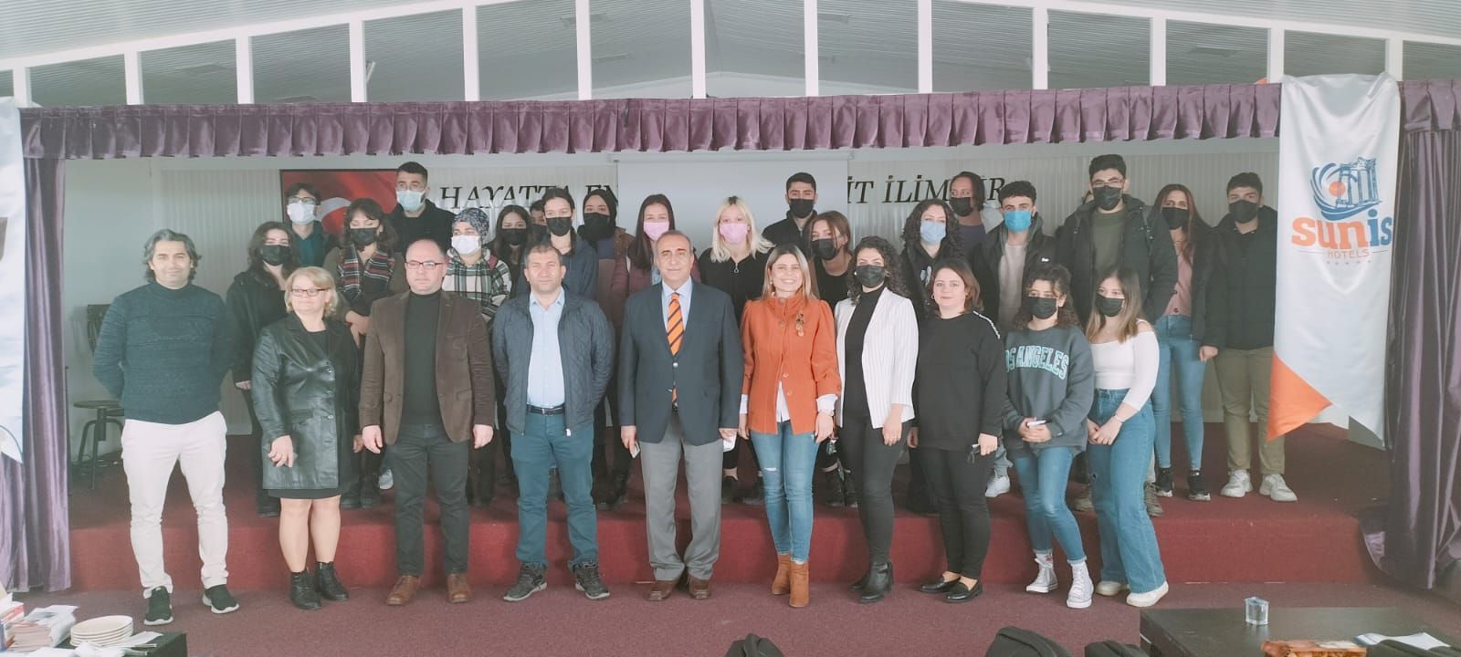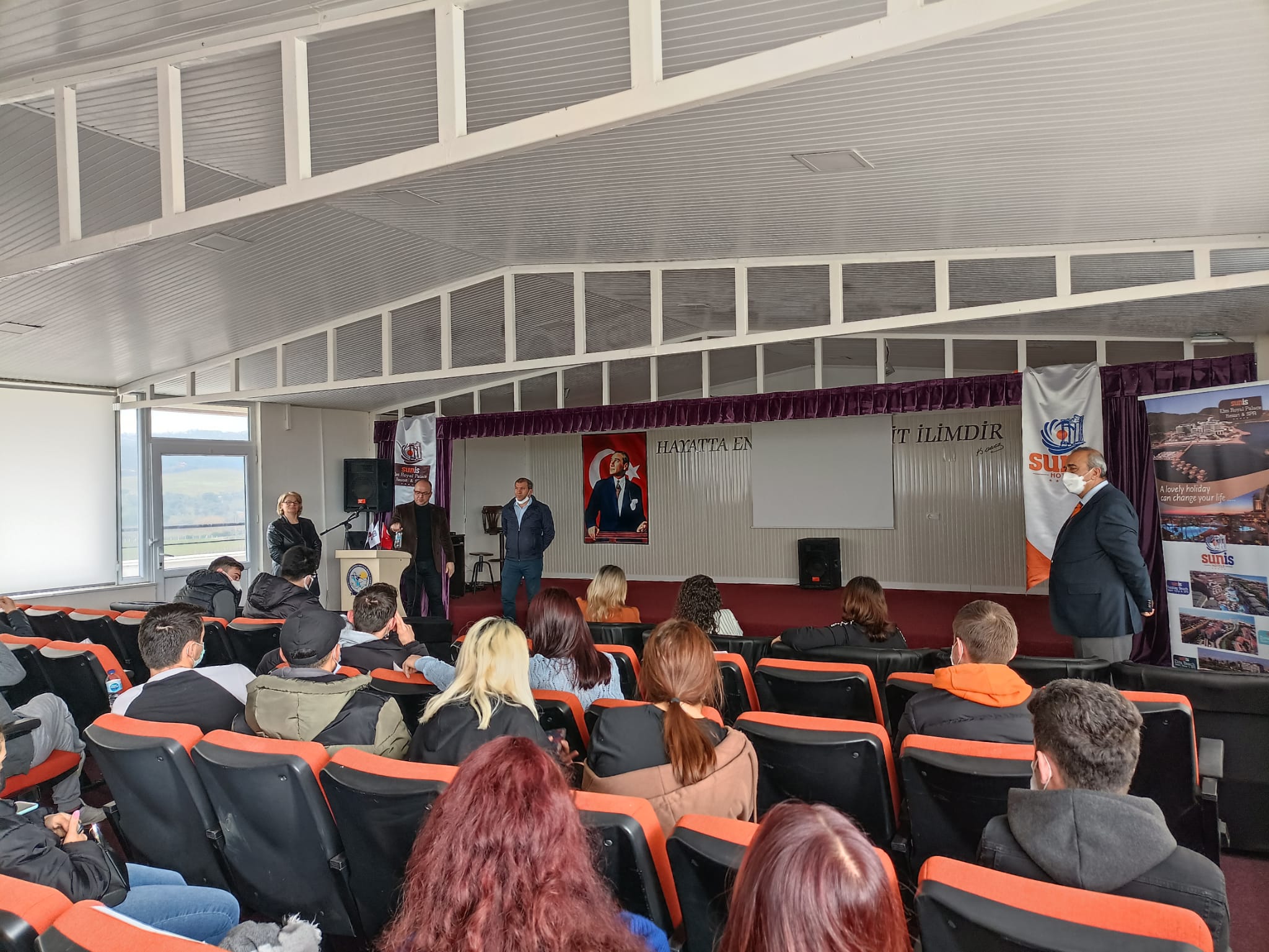 Üniversite sektör iÅŸbirliÄŸi kapsamında Sunis Efes Royal Palace Resort & Spa Hotel 01 Mart 2022 tarihinde Davutlar Myo'yu ziyaret etti. Otelin Mutfak Åžefi Abdullah Åžeker, F&B Müdürü Hasan Akyol ve Kat Hizmetleri Müdürü Dilek TaÅŸ öÄŸrencilerimize kendilerini tanıtarak otel ve olanakları hakkında öÄŸrencilerimize bilgi verdi. Bilgilendirme sonrası soru cevap yapıldı ve toplu fotoÄŸraf çekimi ile etkinlik son buldu. Meslek Yüksekokulumuz ve otel arasında iÅŸbirliÄŸi konusunda karara varıldı.