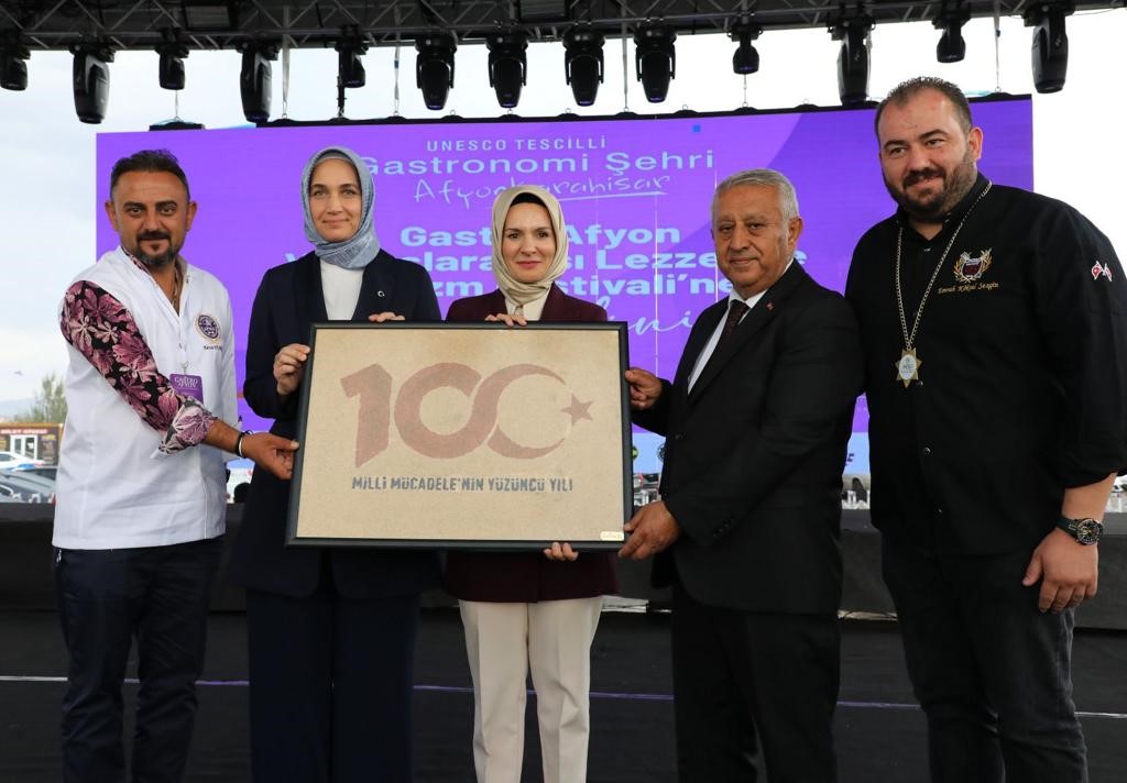 Festival açılış programında Aile ve Sosyal Hizmetleri Bakanı Sayın Mahinur Özdemir GöktaÅŸ’a hediye edilen ve öÄŸretim elemanlarımız tarafından hazırlanan “Milli Mücadelenin 100. Yılı” tablosu büyük beÄŸeni toplarken, Afyonkarahisar Valisi Sayın Kübra Güran YiÄŸitbaşı ve Afyonkarahisar Belediye BaÅŸkanı Mehmet Zeybek’e ise tabloları gala gecesinde takdim edildi.