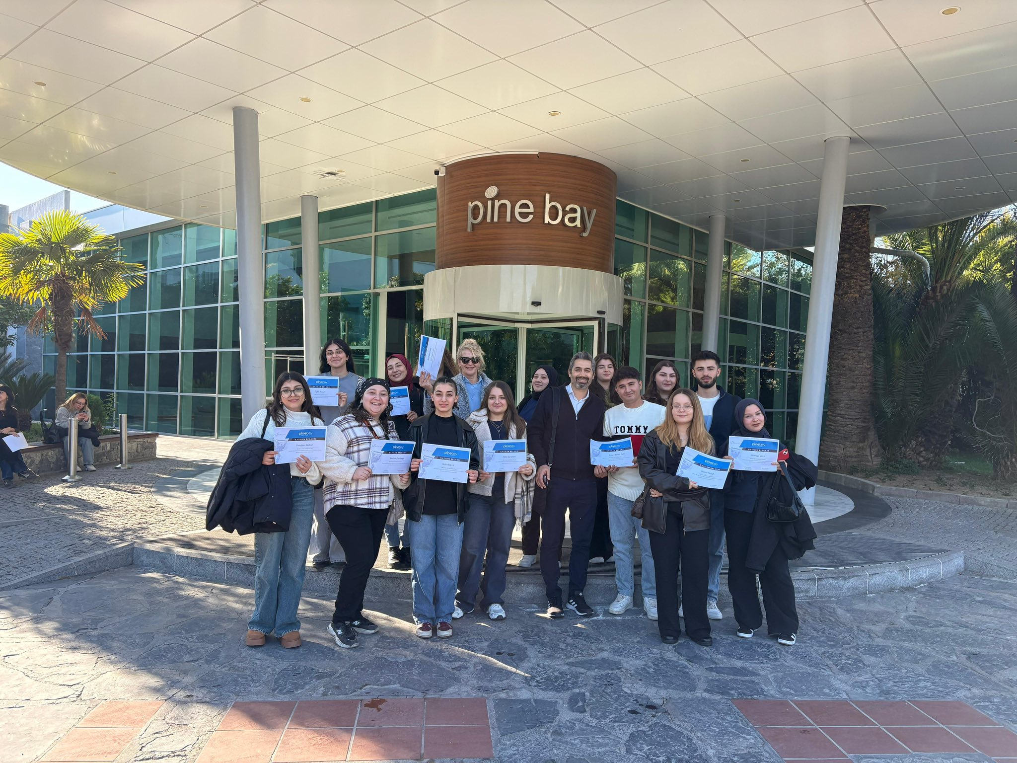 ADÜ Kuşadası Davutlar Meslek Yüksekokulu’muzda 18 Aralık 2025 Perşembe günü Pine Bay Holiday Resort Otel'e Yiyecek içecek Servisi dersi kapsamında gezi düzenlenmiştir. Aşçılık programı öğrencilerimizin katılım gösterdiği teknik gezide öncelikle konferans salonunda otel hakkında bilgi verilmiş olup sonrasında otelin departmanları ve alanları gezilmiştir. Departman müdürlerinin kariyer hikâyelerini anlatmaları ve öğrencilerin soru ve cevaplarıyla devam eden etkinlik yemekle birlikte son bulmuştur.