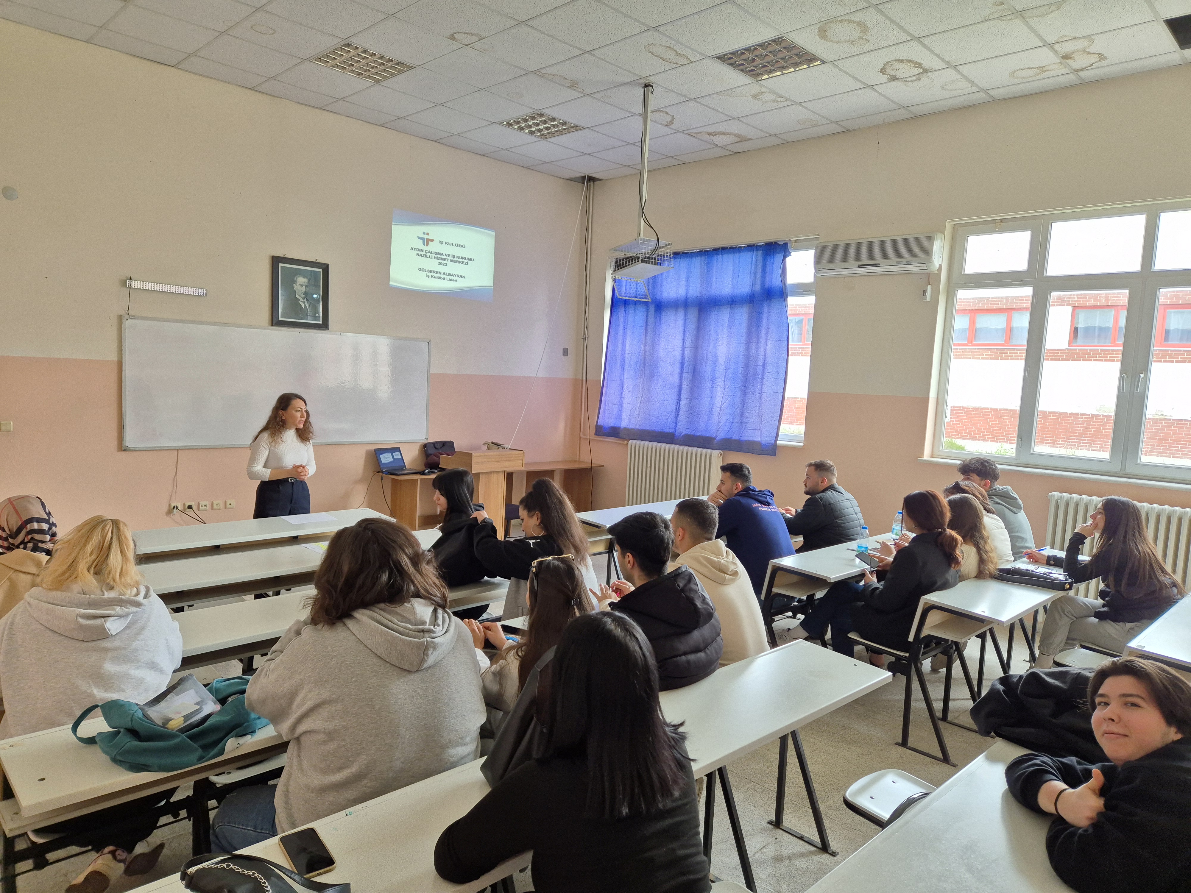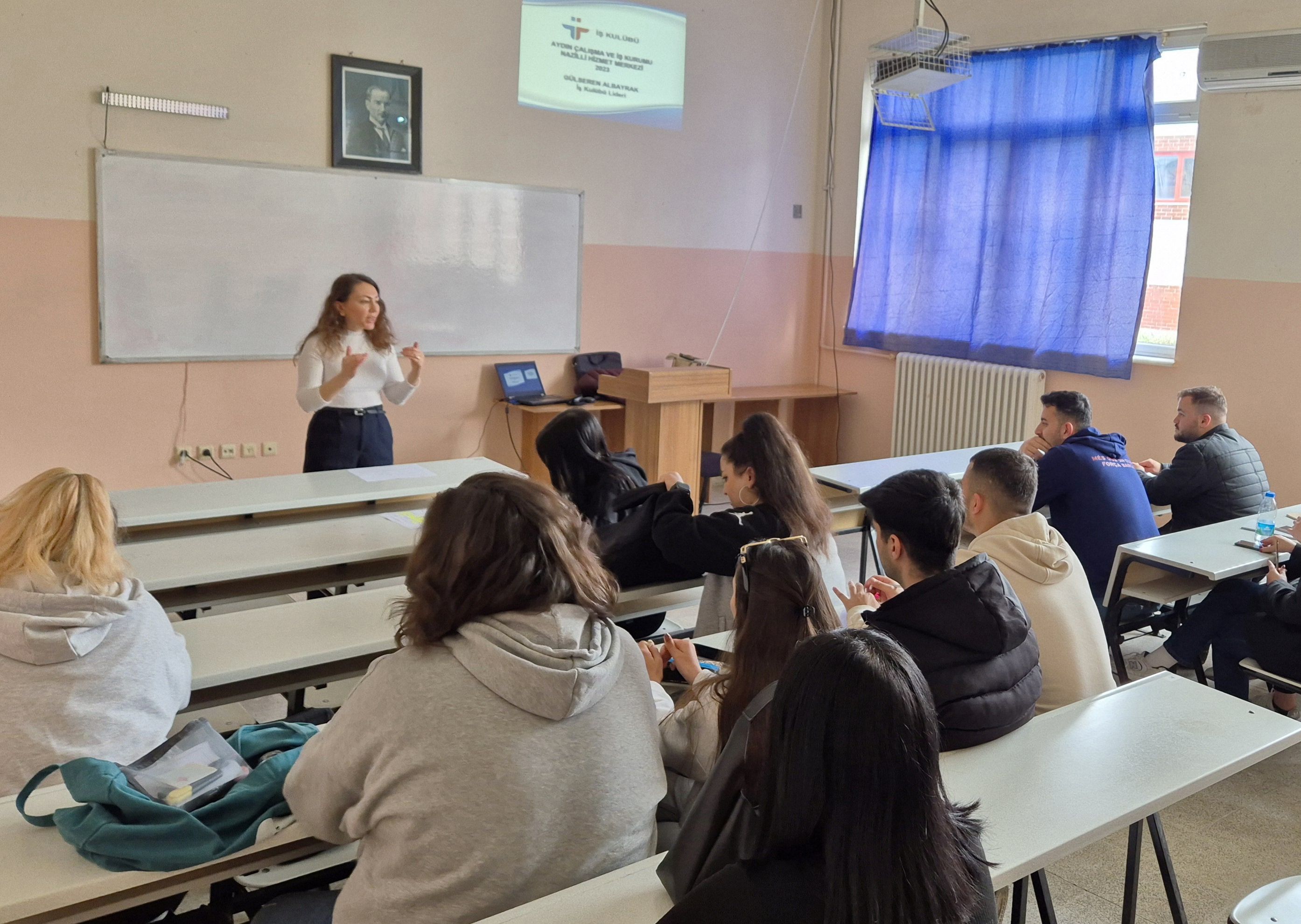 Aydın Çalışma ve İş Kurumu Nazilli Hizmet Merkezi'nde görevli İş ve Meslek Danışmanı Gülseren ALBAYRAK Kuyucak MYO öÄŸrencilerine seminer verdi. Nazilli Sümer Kampüs Kuyucak MYO dersliklerinde 13 ve 27 Mart tarihlerinde yapılan iki oturumdan ve 6 saatten oluÅŸan eÄŸitimde İş Kulübü ile ilgili genel bilgilendirmeler yapan ALBAYRAK öÄŸrencilerimize iÅŸ arama becerileri, iÅŸ gücü piyasası, ayrıntılı mülakat teknikleri ve özgeçmiÅŸ hazırlama gibi konularda bilgiler verdi. EÄŸitime katılan öÄŸrencilere İş Kulübü Sertifikası verildi.