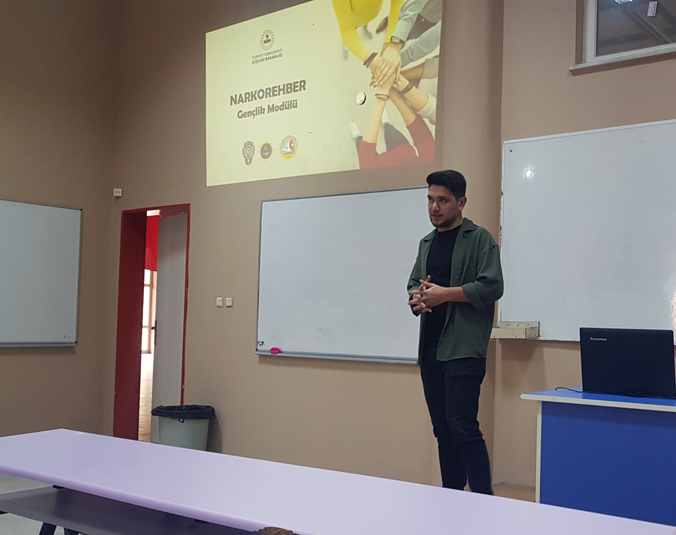 Nazilli Narkotik Suçlarla Mücadele Büro AmirliÄŸi’nden Komiser Furkan KarataÅŸ “UyuÅŸturucuyla Mücadelede Farkındalık Kazandırma” konulu seminer verdi. KonuÅŸmasında uyuÅŸturucuya baÅŸlayan her dört kiÅŸiden üçünün 18-24 yaÅŸ aralığında olduÄŸuna dikkat çekip alınması gereken tedbirlerden detaylıca bahsetti.