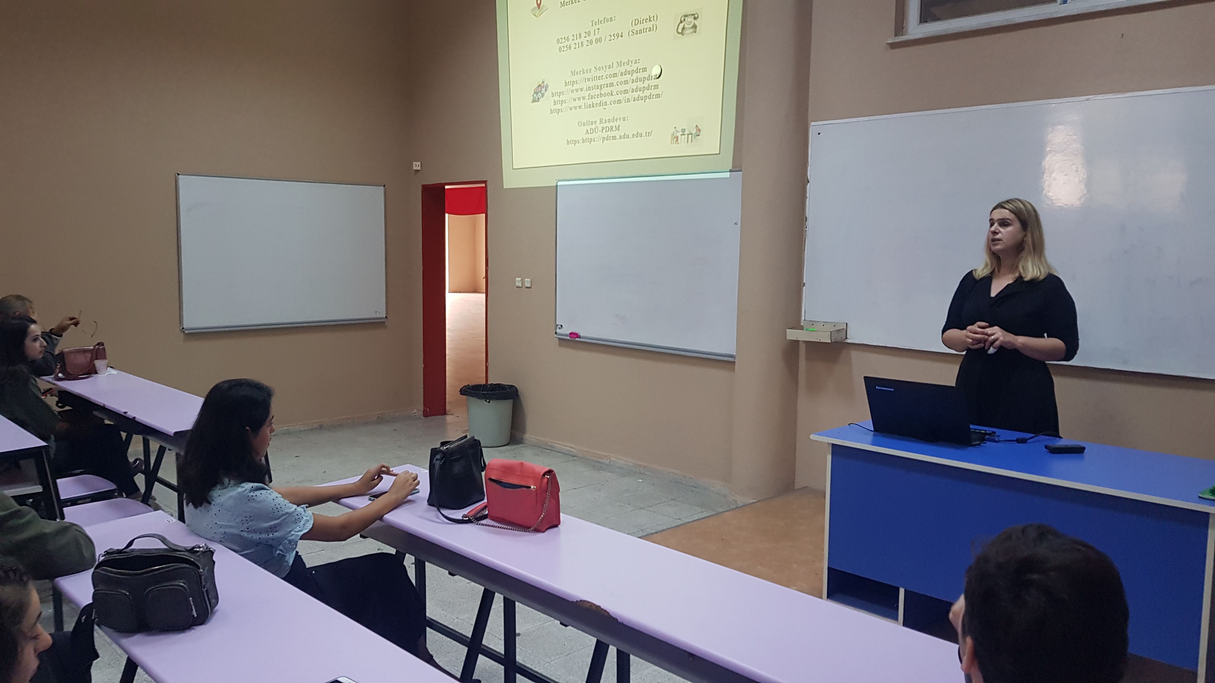 Psikolojik Danışman Esma KIRANTA, PDRM ile ilgili bilgilendirmeler yaptı ve Psikolojik Danışma ve Rehberlik Uygulama ve AraÅŸtırma Merkezi’nin öÄŸrenciler için öneminden bahsetti.