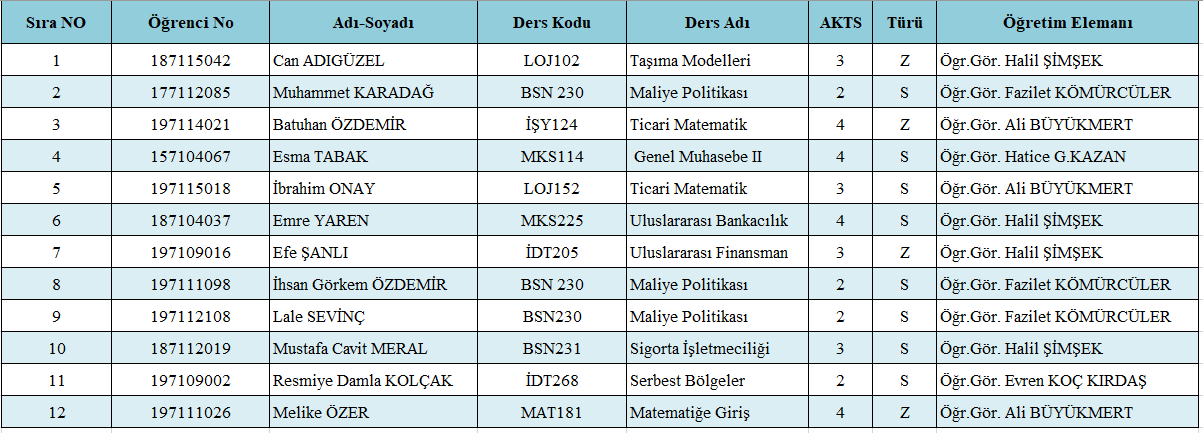 2021-2022 Eğitim Öğretim Yılı Güz Dönemi Sonu Tek Ders Sınavı 02 Mart 2022 Çarşamba günü saat 14:00’da Nazilli Meslek Yüksekokulu Dersliklerinde yapılacaktır.
