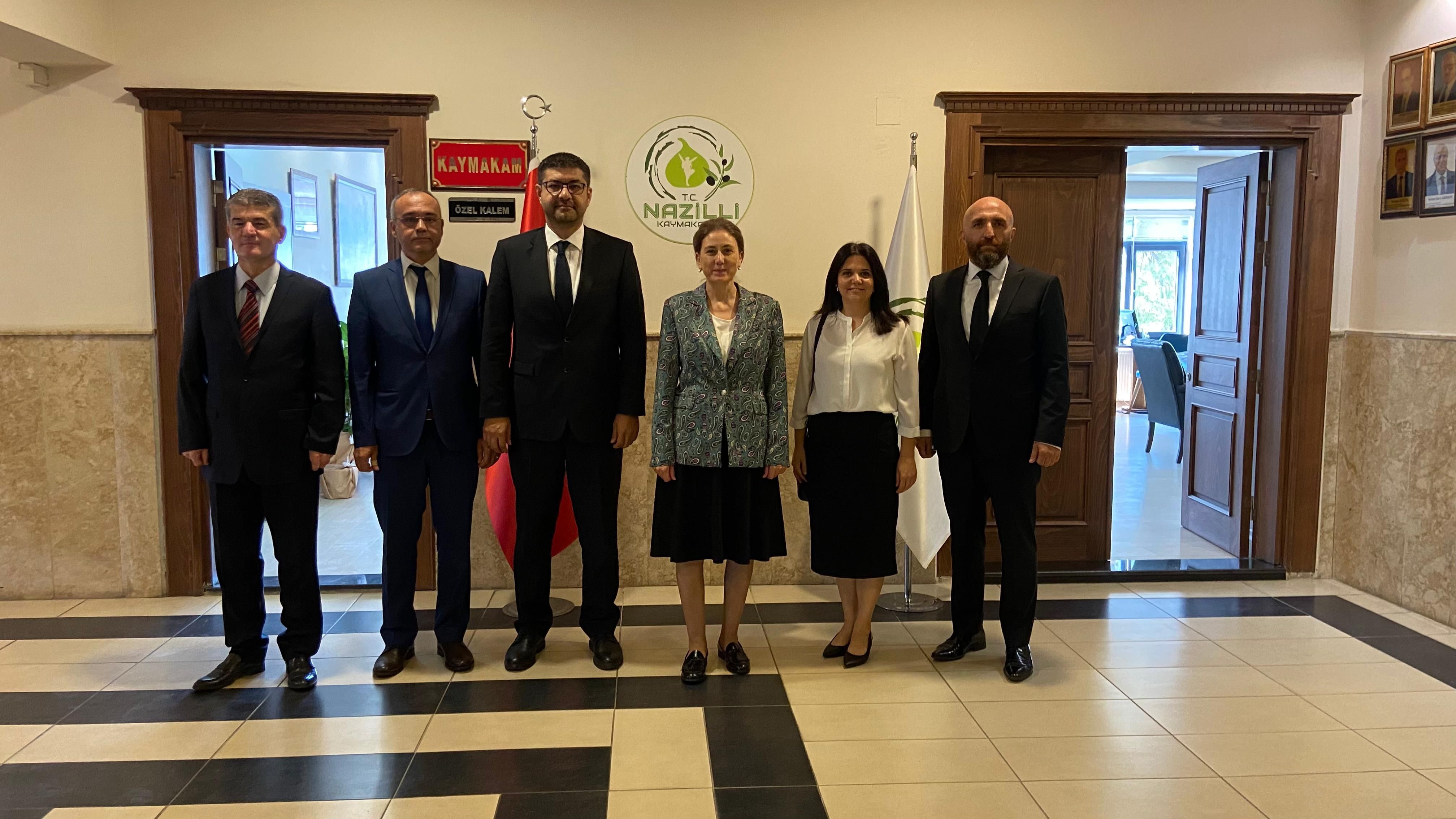 Nazilli Meslek Yüksekokulu müdürü Prof.Dr.Mustafa ÖZÇAÄž, müdür yardımcısı ÖÄŸr.Gör.Fazilet KÖMÜRCÜLER, meslek yüksekokulu sekreteri Levent ABAK ile Kuyucak Meslek Yüksekokulu müdür yardımcıları Dr.ÖÄŸretim Üyesi D. Ali KIZILYALÇIN ve ÖÄŸr.Gör. Yıldırım TOPRAK 02 Eylül 2024 tarihinde Nazilli Kaymakamı sayın Huriye KÜPELİ KAN' ı makamlarında ziyaret ettiler.