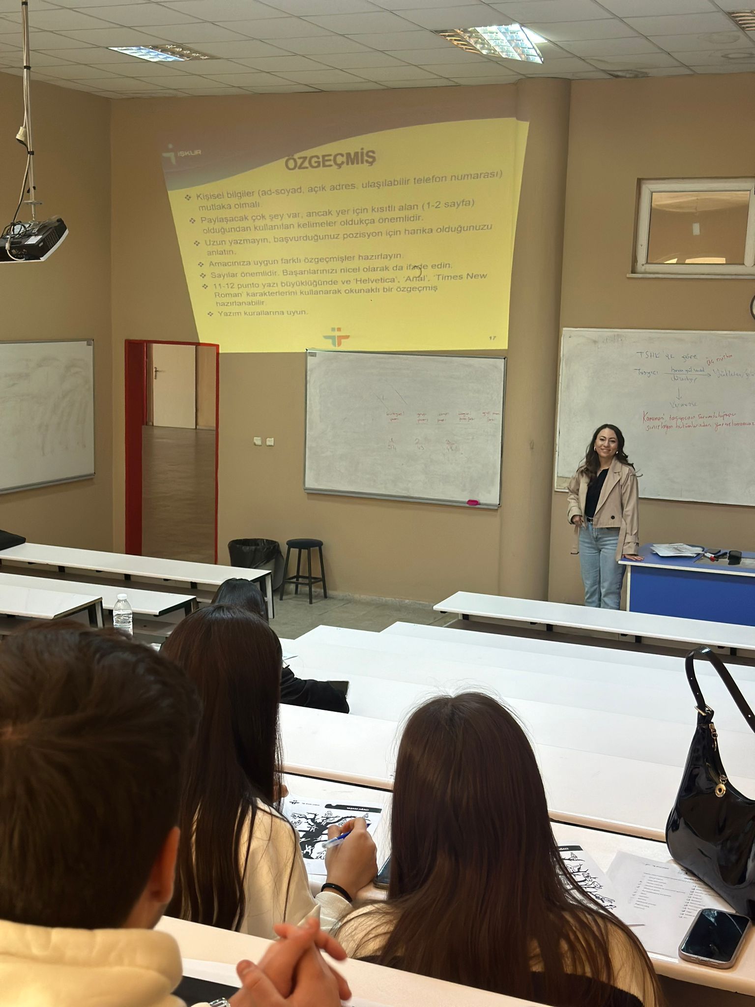Aydın Çalışma ve İş Kurumu Nazilli Hizmet Merkez'inde görevli İş ve Meslek Danışmanı Gülseren Albayrak tarafından 8 Kasım 2024 tarihinde Nazilli Meslek Yüksekokulu Lojistik öÄŸrencilerine İş Kulübü EÄŸitimi verildi. Nazilli MYO dersliklerinde verilen eÄŸitimde öÄŸrencilerimiz iÅŸ arama becerileri, iÅŸ gücü piyasası, mülakat teknikleri ve özgeçmiÅŸ hazırlama gibi konularda bilgilendirildi. EÄŸitime katılan öÄŸrencilerimize sertifika verildi.