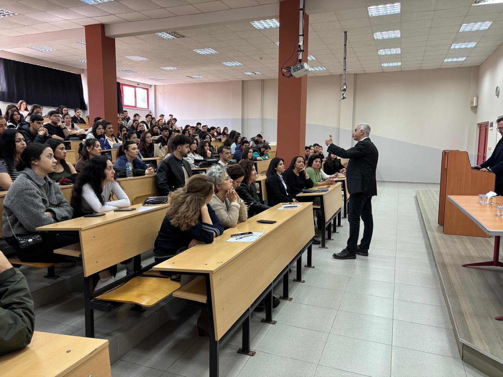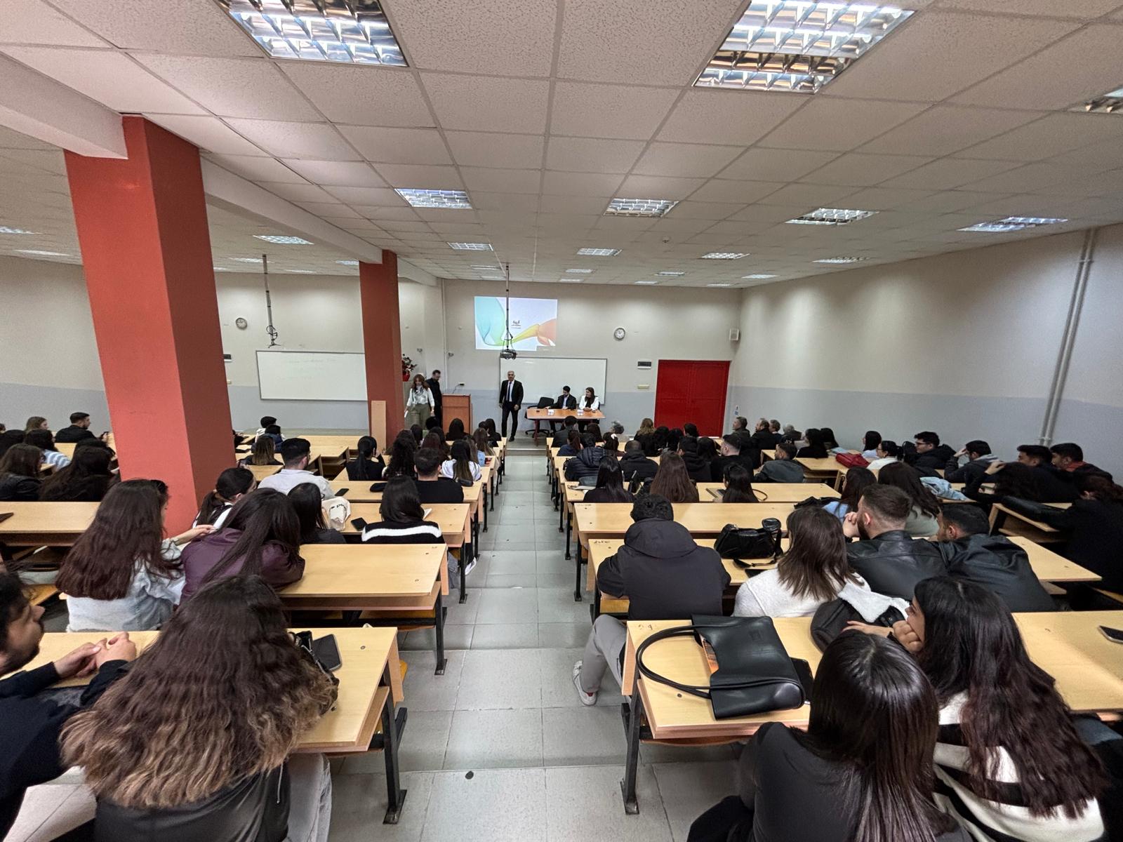 Üniversitemiz Nazilli Meslek Yüksekokulunda (MYO), Kariyer Günleri kapsamında “Finansın Yolculuğu: Kariyer Basamakları ve Fırsatlar” başlıklı seminer düzenlendi. Üniversitemiz akademik personeli ve öğrencilerin katıldığı etkinlikte, Nazilli İktisadi ve İdari Bilimler Fakültesi Öğretim Üyesi Prof. Dr. Yusuf Kaderli, ÜNLÜ&Co Yatırım Hizmetleri Şirketi Çözüm Merkezi Müdürü Seval Özkan ve Analist Özder İşcenkal konuşmacı olarak yer aldı. Yatırım ve finans alanında katılımcılara bilgi aktarılan etkinlikte, finansal okuryazarlığın önemi vurgulandı. Etkinlikte, öğrencilere finans ve yatırım alanındaki kariyer fırsatlarına dair bilgiler edinmelerine olanak tanındı. Etkinlik, soru-cevap bölümünün ardından sona erdi.