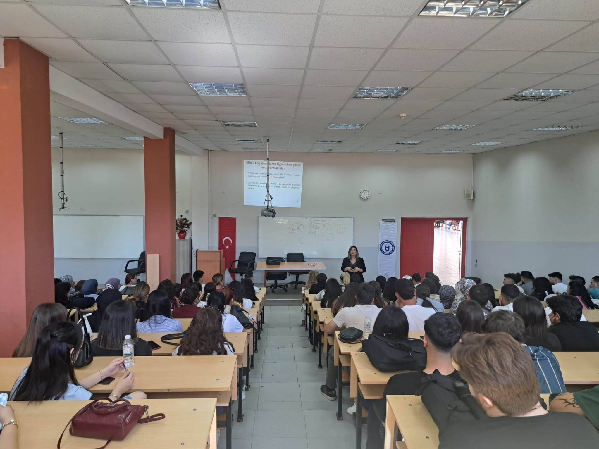 Klinik uygulamada uyulacak kurallar kapsamında; kıyafet düzeni, görev ve sorumluluklar, öÄŸretim elemanlarının rolü ile kullanılacak form ve kayıt süreçleri anlatıldı.