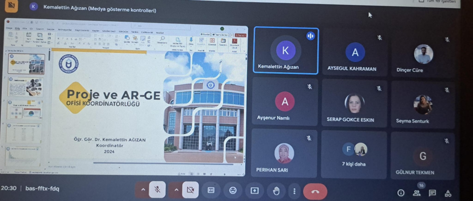 13 Mart 2025 tarihinde uzaktan çevrimiçi olarak gerçekleştirilen eğitimde, Üniversitemiz Proje ve Ar-Ge Koordinatörü Öğr. Gör. Dr. Kemalettin AĞIZAN, akademisyenlere proje yönetimi ve araştırma destekleri hakkında önemli bilgiler sundu. Eğitimde, TÜBİTAK destekli projelere başvuru süreçleri, proje yazımı gibi konulara odaklanıldı.