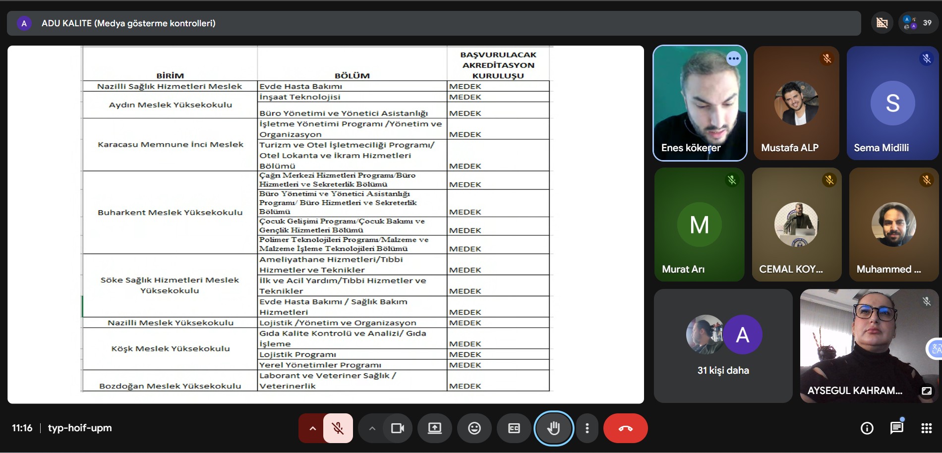 Toplantı, Öğr. Gör. Dr. Enes Berhudan Kökerer’in katılımıyla yürütülmüş; MEDEK’e ön başvuru yapan meslek yüksekokullarının yöneticileri ile ilgili programlardan sorumlu akademik ve idari personel toplantıda yer almıştır.
