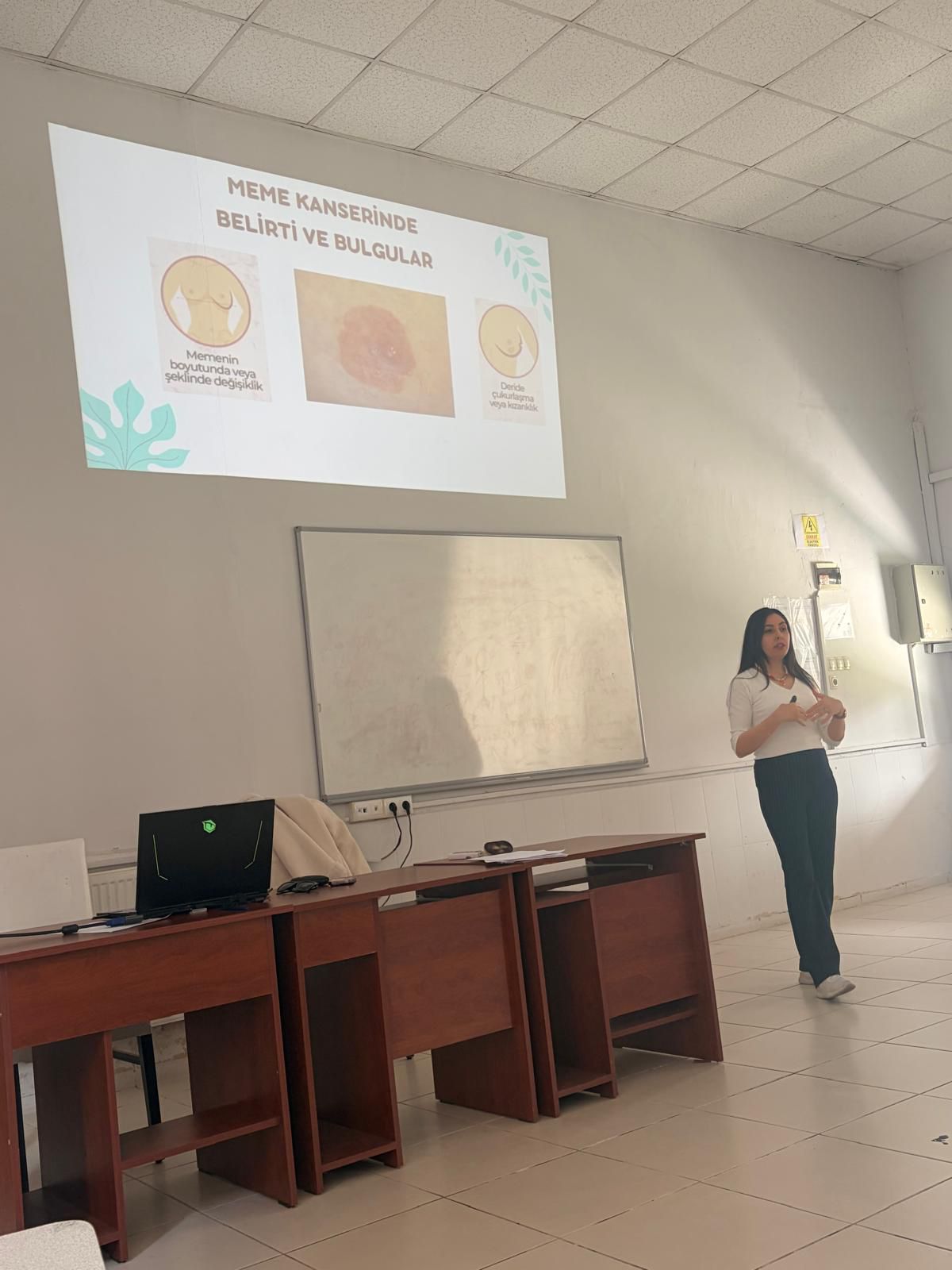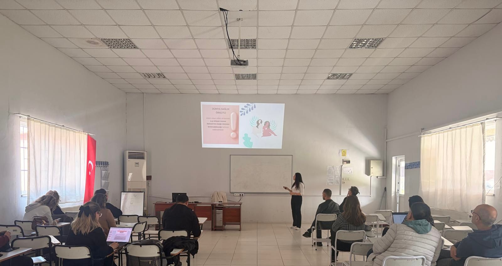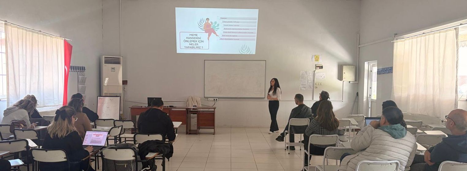 24.03.2026 tarihinde Sümer Kampüsü SaÄŸlık Bakım Hizmetleri Laboratuvarında Meme Kanseri Farkındalık Hizmetiçi EÄŸitimi gerçekleÅŸtirildi. Akademik ve idari personele meme kanseri ve erken teÅŸhisi için önemli olan taramalar hakkında farkındalık oluÅŸturmanın amaçlandığı eÄŸitimde meme kanserinin tanımı, görülme sıklığı, risk faktörleri, taramalar ve BIRADS risk sınıflandırması ile ilgili bilgi verildi. Meme kanseri taramalarından biri olan Kendi Kendine Meme Muayenesinin ne zaman ve nasıl yapılması gerektiÄŸi ÖÄŸr. Gör. TuÄŸba Karan tarafından görseller ile desteklenerek uygulamalı olarak anlatıldı.