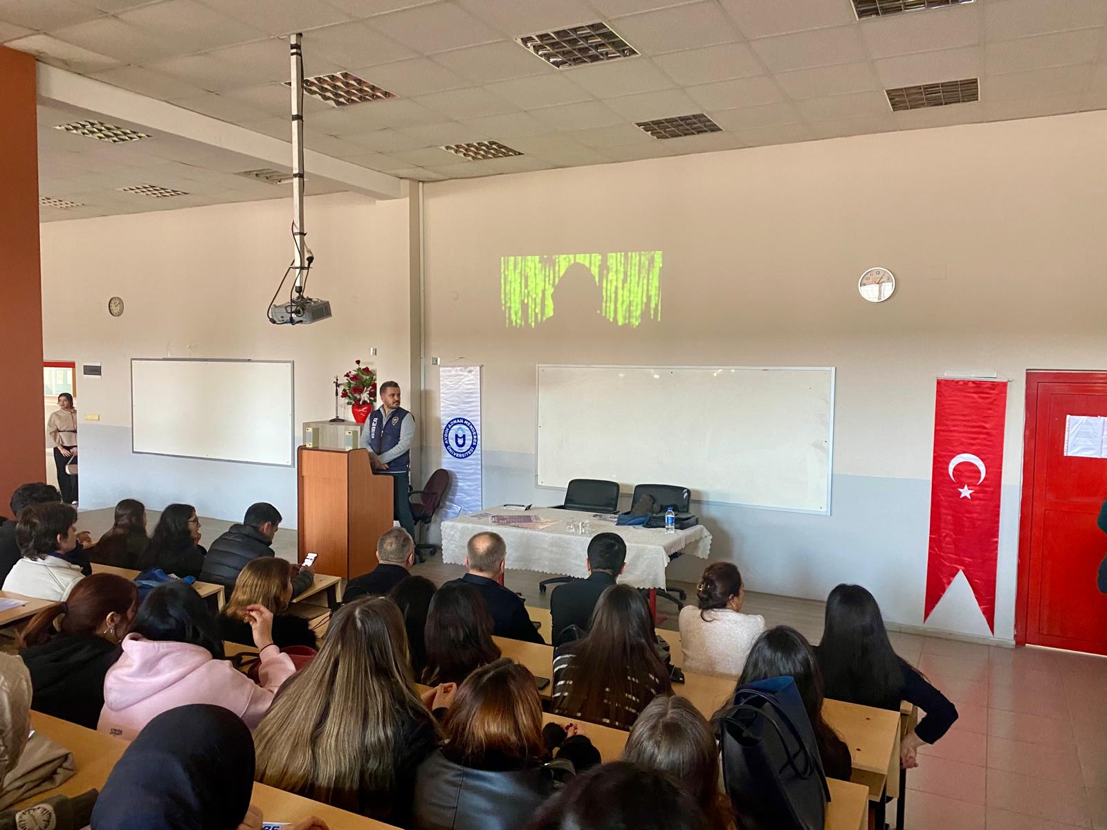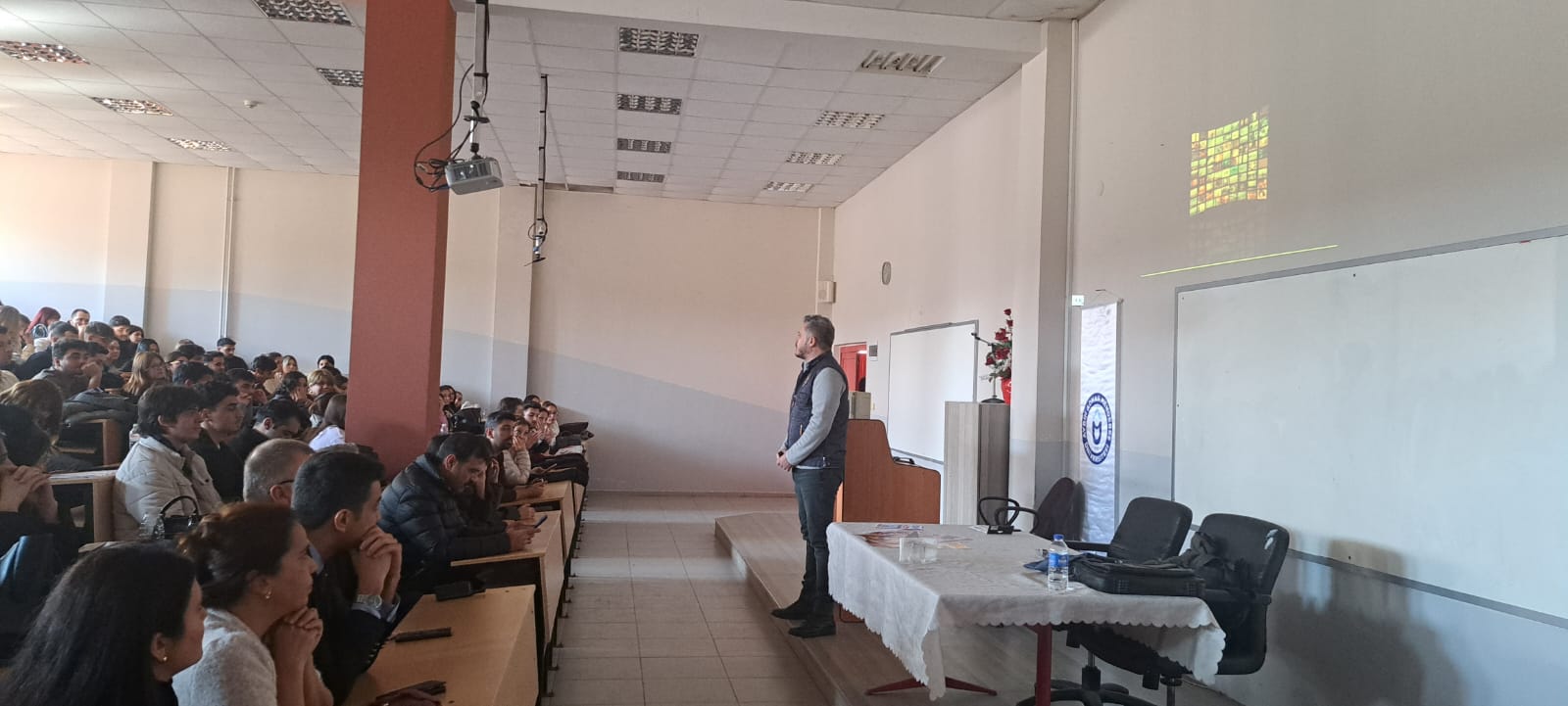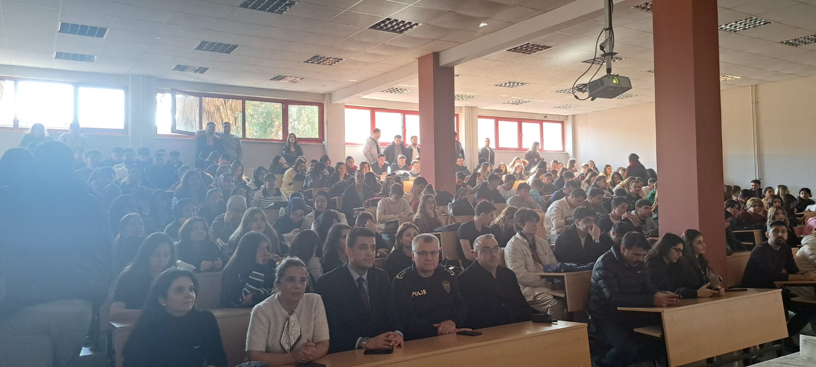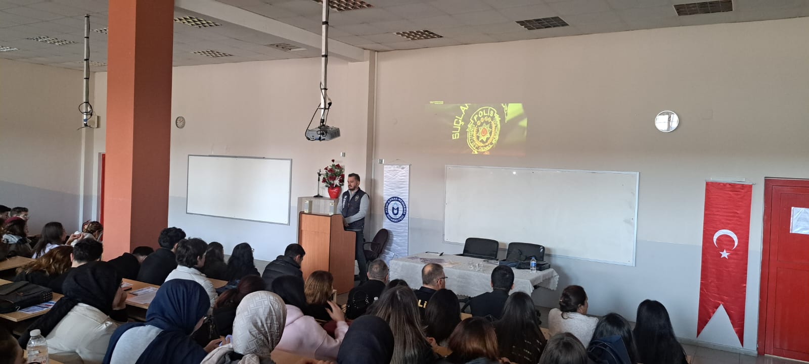 23.12.2025 tarihinde Nazilli Sağlık Hizmetleri Meslek Yüksekokulu öğrencilerine yönelik olarak “Bilişim Suçları ve Hukuki Boyutu” konulu bir eğitim gerçekleştirildi. Eğitime Nazilli İlçe Emniyet Müdürü Erdal Esen, Nazilli Cumhuriyet Savcısı Halil Ateş ve bilişim suçları biriminde görevli emniyet personeli katılım sağladı.