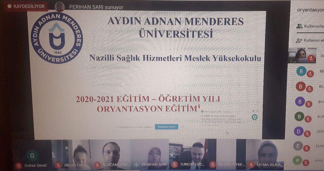 Aydın Adnan Menderes Üniversitesi Nazilli SaÄŸlık Hizmetleri Meslek Yüksekokulu 2020-2021 Akademik Yılı Uzaktan Oryantasyon EÄŸitimi, 18.09.2020 Cuma günü online olarak Evde Hasta Bakımı ve YaÅŸlı Bakımı Programları için ayrı iki oturum ÅŸeklinde Google Meet uygulaması üzerinden gerçekleÅŸti.