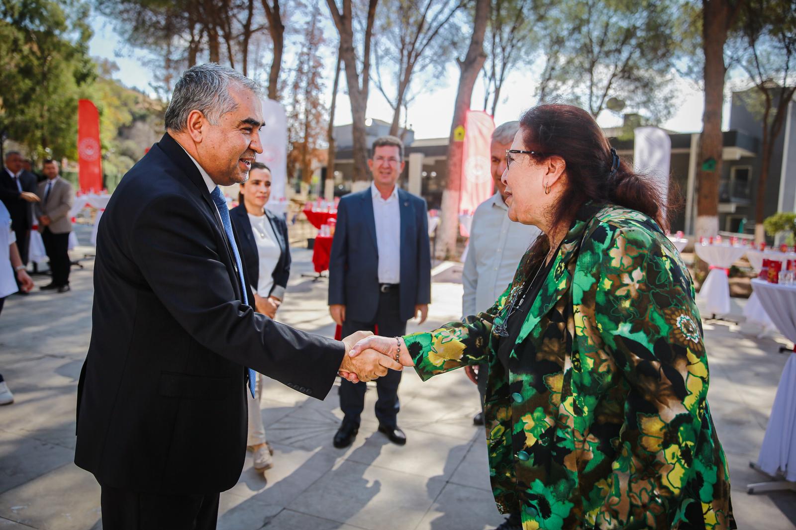 Aile ve Sosyal Hizmetler Bakanı Mahinur Özdemir GöktaÅŸ’ın Aydın ziyareti kapsamında düzenlenen programda, Aydın Adnan Menderes Üniversitesi Rektörü Prof. Dr. Bülent KENT, Nazilli SaÄŸlık Hizmetleri Meslek Yüksekokulu Müdürü Doç. Dr. Serap GÖKÇE ESKİN ve YaÅŸlı Bakımı Programı öÄŸrencileriyle bir araya geldi.