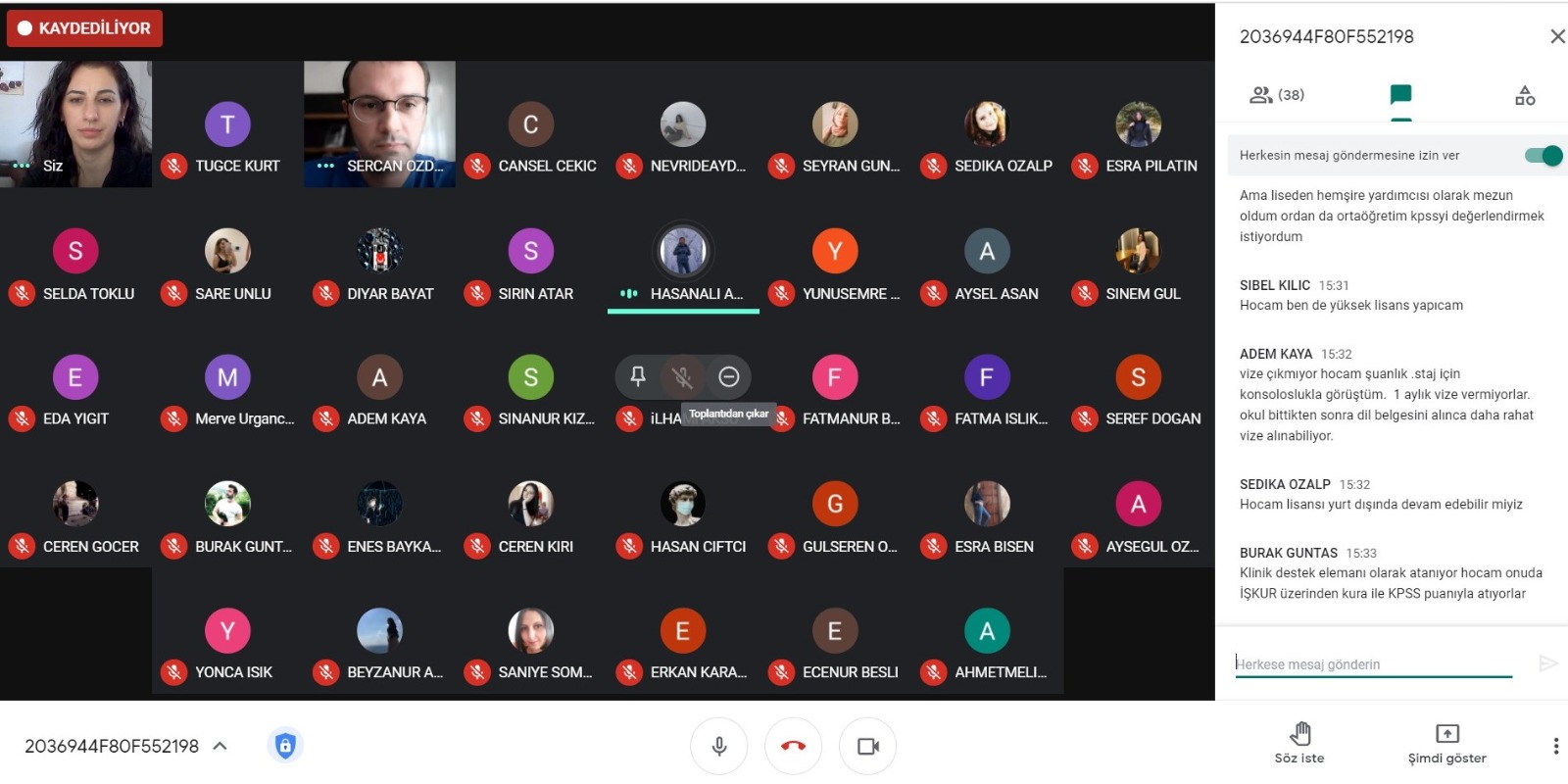 Nazilli Sağlık Hizmetleri Meslek Yüksekokulu 2020-2021 Eğitim-Öğretim Yılı Bahar Dönemi Sosyal Sorumluluk Söyleşilerinin 20 Mayıs 2021 tarihli söyleşisindeki konuğu Nazilli Devlet Hastanesi Anestezi ve Reanimasyon Yoğun Bakım Ünitesi’nde görevli Uzm. Hemşire Sercan ÖZDEMİR idi. Moderatörlüğünü Öğr. Gör. Gülşah Şükran KALE’nin üstlendiği söyleşiye okul öğretim elemanları ve öğrencileri katılım sağladı.