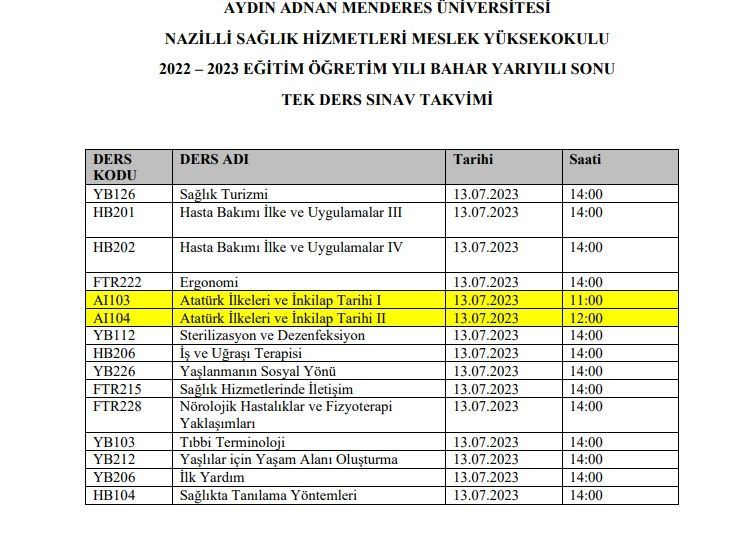 Tek Ders Sınav takvimine ulaÅŸmak için