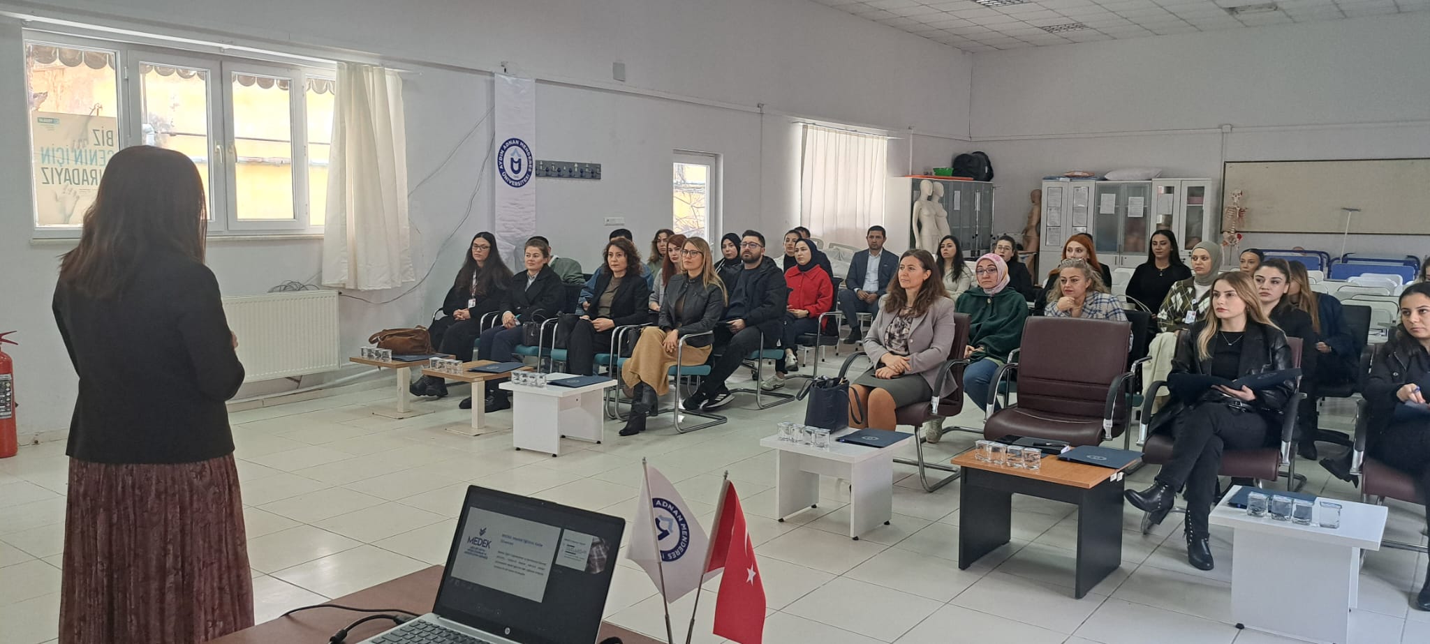 Toplantıya; Nazilli Devlet Hastanesi Sağlık Bakım Hizmetleri Müdürü Aysel Sucu, Uzman Doktor Maide Akay Çiftçi, Evde Sağlık Teknikeri Betül Karaca, Hemşire Gamze Demir ve Hemşire Burçin Kaya; Nazilli İlçe Sağlık Müdürlüğü’nden Dr. Kübra Taşkınsakarya; Mutlu Hayat Bakım Merkezi’nden Sosyal Çalışmacı Seda Aydınlıoğlu, Evde Hasta Bakım Teknikeri Sude Ülkü Magunacı ve Yaşlı Bakım Teknikeri Zilan Yeşiltepe; Nazilli Haluk Alıcık Huzurevi’nden Fizyoterapist Sefa Rüştü Yüksel; Horsunlu Huzurevi’nden Destek Personeli Kübra Çapın; Ayref Danışmanlık’ten Gonca Güneş ve Ümit Bayındır ile mezun öğrenciler Hacer Ülker ve Fatih Yiğit katılım sağladı. Ayrıca okulun Sağlık Bakım Hizmetleri Bölümü öğretim elemanları ile program temsilcisi öğrenciler de toplantıda yer aldı.