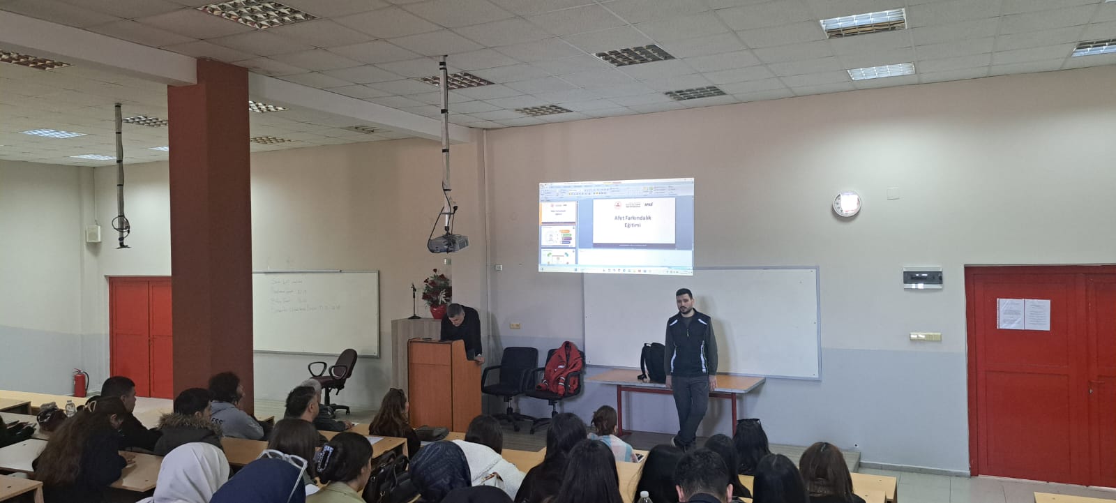 Nazilli Sağlık Hizmetleri Meslek Yüksekokulu Konferans Salonunda, 10 Mart 2026 tarihinde öğrencilere yönelik “Deprem ve Afet Bilinci” konulu eğitim programı gerçekleştirildi.