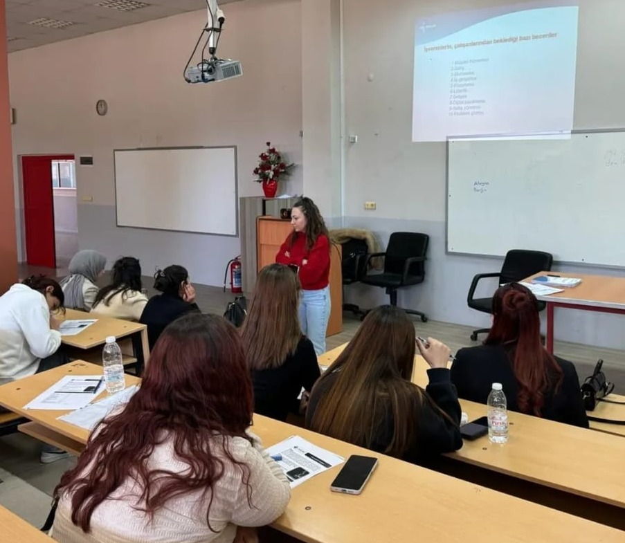 Düzenlenen eğitim programında öğrencilere iş arama sürecinde farkındalık kazandırılması, etkili CV hazırlama teknikleri, mülakat simülasyonları, beden dili ve iletişim becerilerinin geliştirilmesi gibi konularda uygulamalı bilgiler verildi.