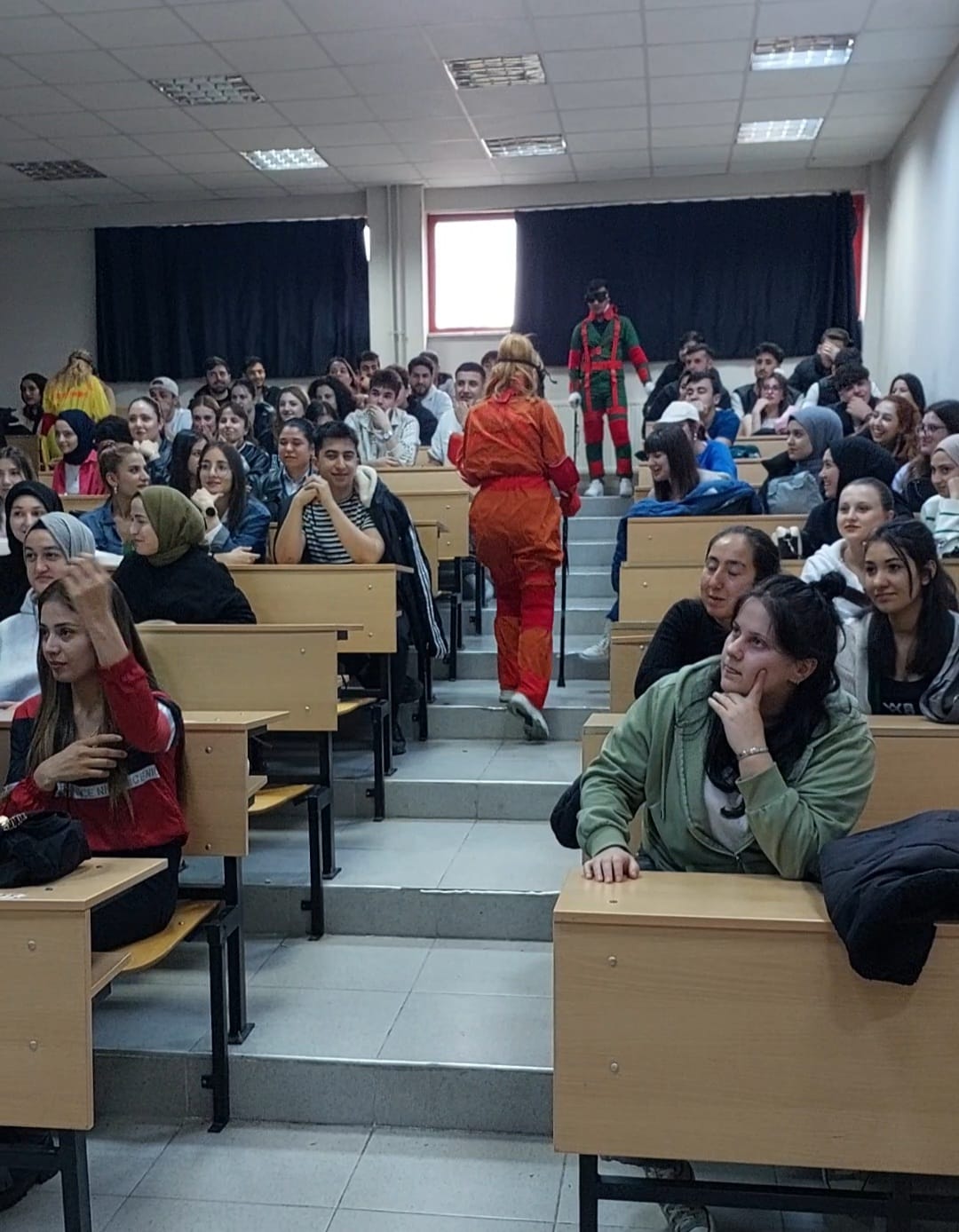 Yaşlılık Simülasyon Giysisi, genç bireylerin fonksiyonel kabiliyetlerinin pek çoğu azaldığında yaşlıların yaşam şartlarını tanımalarına ve keşfetmelerine olanak veren bir tulumdur. Temel Gerontoloji dersinde yaşlılardaki fizyolojik değişimleri deneyimlemeleri ve yaşlanmanın sistemler üzerindeki etkisi ile ilgili farkındalık oluşturmak için yaşlı bakım öğrencilerimizle yaşlanma simülasyonu gerçekleştirildi. Öğrenciler Simülasyon uygulaması sonrasındaki deneyimlerini ve yaşlanma ile birlikte ortaya çıkan zorlukları paylaştılar.