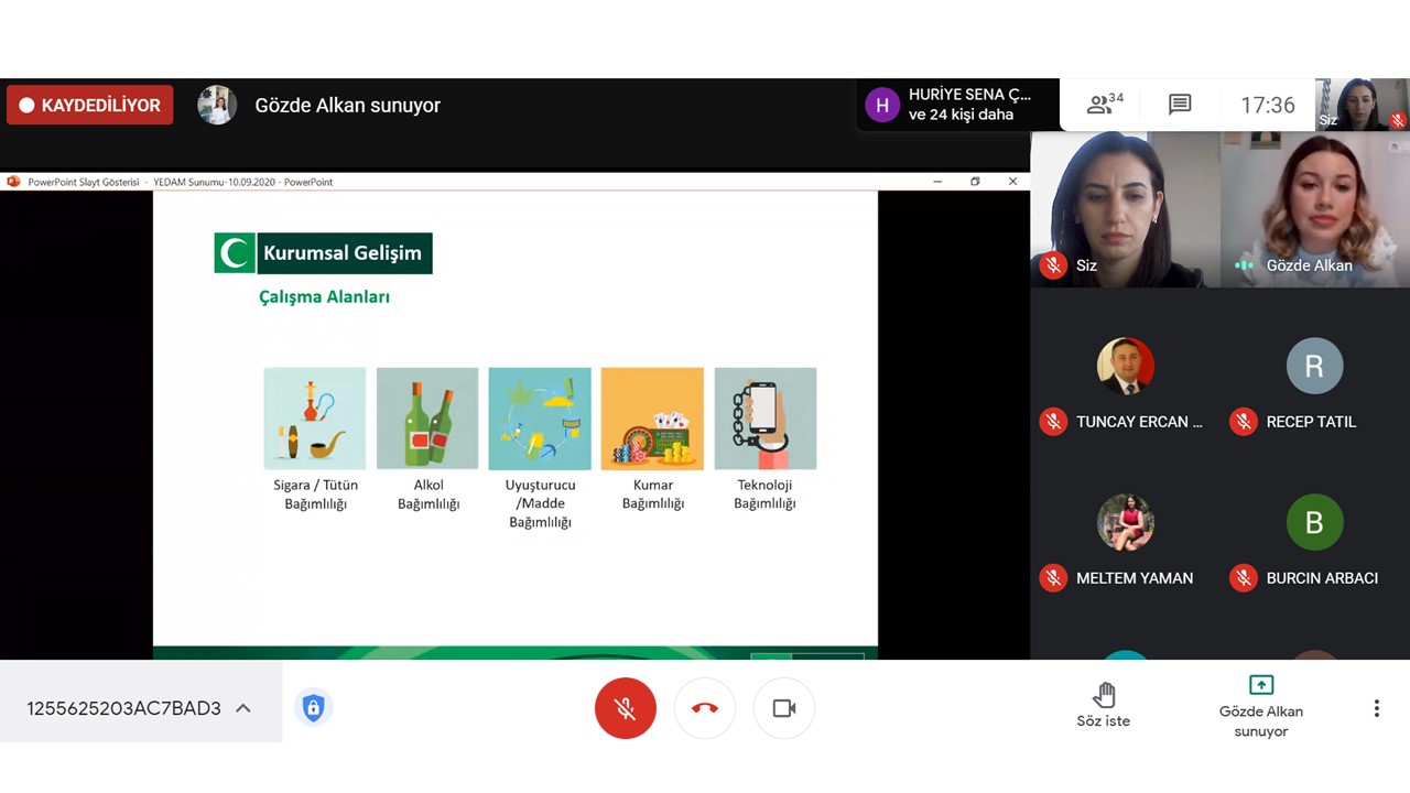 Bağımlılığı önleme ve mücadele konusunda yıllardır faaliyet gösteren YeÅŸilay’ın 2020 yılı itibariyle birçok ilde açtığı Danışmanlık Merkezleri (YEDAM) ile önleme çalışmalarının yanı sıra baÅŸlattığı iyileÅŸtirme ve rehabilitasyon faaliyetlerini aktaran SHU Gözde Alkan, YeÅŸilay’ın bağımlılıktan kurtulmak ve iyileÅŸmek isteyen kiÅŸilere ve ailelerine boÅŸ zaman deÄŸerlendirme, sosyal beceri kazandırma, grup terapisi, iÅŸ bulma, meslek edindirme gibi birçok hizmet sunduÄŸunu ifade etti.