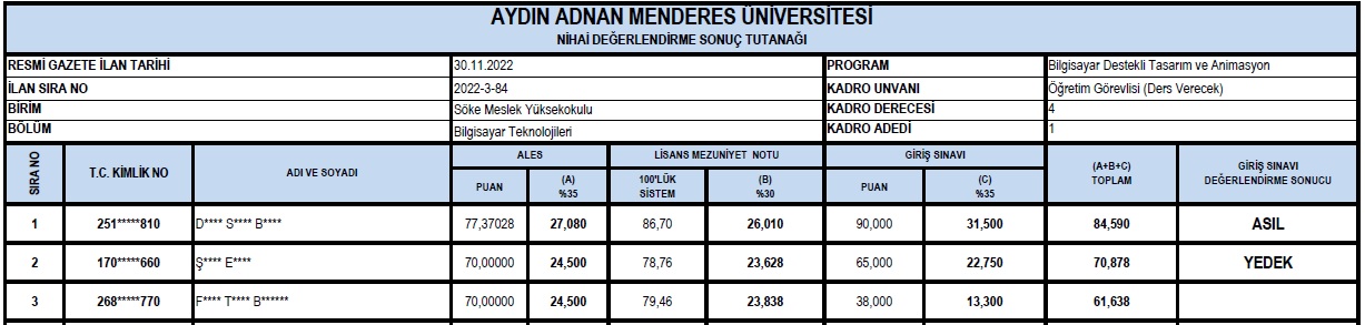 Bilgisayar Teknolojileri Bölümü Öğretim Elemanı Değerlendirme Sonucu