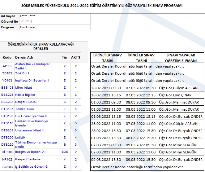 EK SINAV PROGRAMI