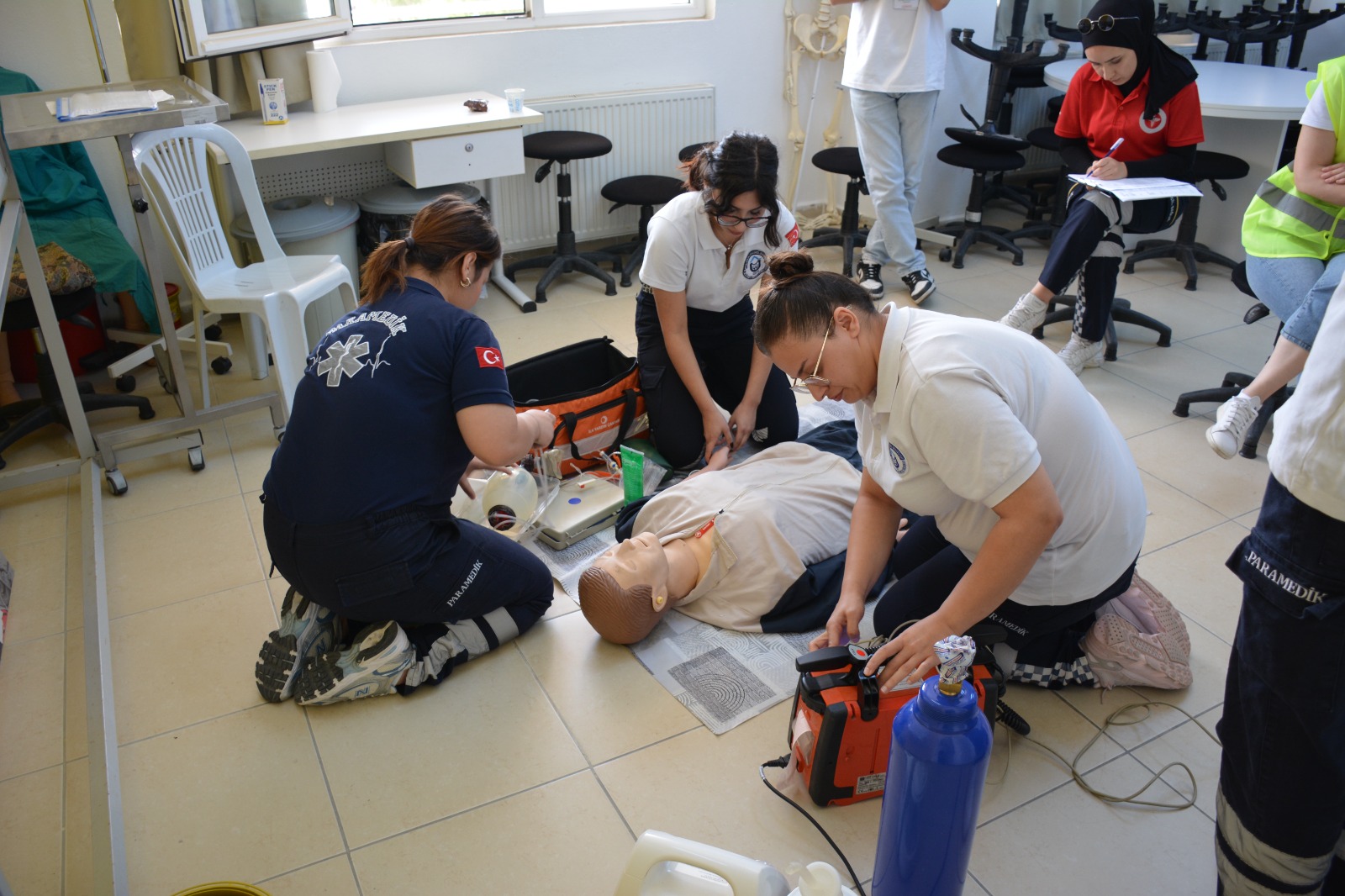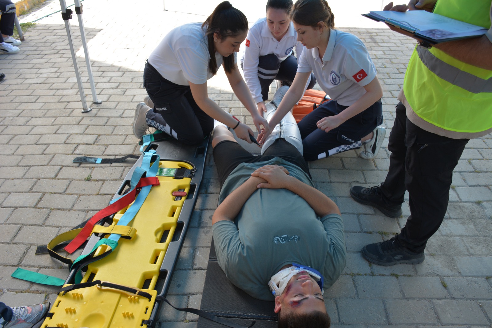 Etkinlikte, İlk ve Acil Yardım Programı öğrencilerinin meslek hayatlarında karşılaşabilecekleri durumları, gerçeğe yakın senaryolar eşliğinde deneyimlemeleri amaçlandı. Öğrencilerin motivasyon, zaman yönetimi, ekip çalışması ve acil olgu yönetimi becerilerini geliştirmeleri hedeflendi. Altı farklı etapta kıyasıya mücadele eden öğrenciler, ilk etapta hipoglisemi nedeniyle senkop geçiren bir hastaya müdahale etti. Diğer etaplarda ise çocuk ve yetişkin hastalara ileri yaşam desteği uygulamaları yapıldı. Ayrıca, piknik yapan bir ailenin yanlarında bulunan tüpün patlaması sonucu yaralananlara triyaj uygulayan öğrenciler, son olarak hasta taşıma etabı ile yarışmayı tamamladılar.