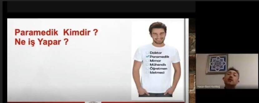 Uzman paramedik Hasan Basri Kızıldağ Paramediğin Stres Altında Kritik Karar Verebilme Becerisi konulu sunumunda, hastane öncesi acil bakımda kritik karar verme sürecinin öneminden bahsetti ve öğrencilere mesleklerinin alanda başlayarak hastanede sona erdiğini, ulaşılabilir ve ulaşabilir olmanın önemini bir kez daha hatırlattı.
