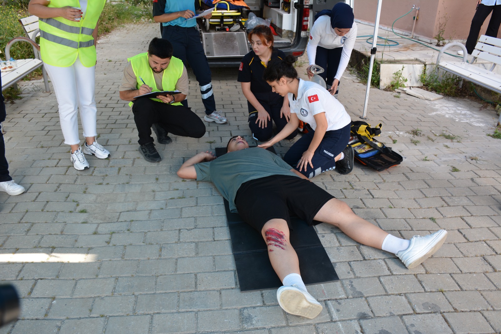 Etkinlikte, İlk ve Acil Yardım Programı öğrencilerinin meslek hayatlarında karşılaşabilecekleri durumları, gerçeğe yakın senaryolar eşliğinde deneyimlemeleri amaçlandı. Öğrencilerin motivasyon, zaman yönetimi, ekip çalışması ve acil olgu yönetimi becerilerini geliştirmeleri hedeflendi. Altı farklı etapta kıyasıya mücadele eden öğrenciler, ilk etapta hipoglisemi nedeniyle senkop geçiren bir hastaya müdahale etti. Diğer etaplarda ise çocuk ve yetişkin hastalara ileri yaşam desteği uygulamaları yapıldı. Ayrıca, piknik yapan bir ailenin yanlarında bulunan tüpün patlaması sonucu yaralananlara triyaj uygulayan öğrenciler, son olarak hasta taşıma etabı ile yarışmayı tamamladılar.
