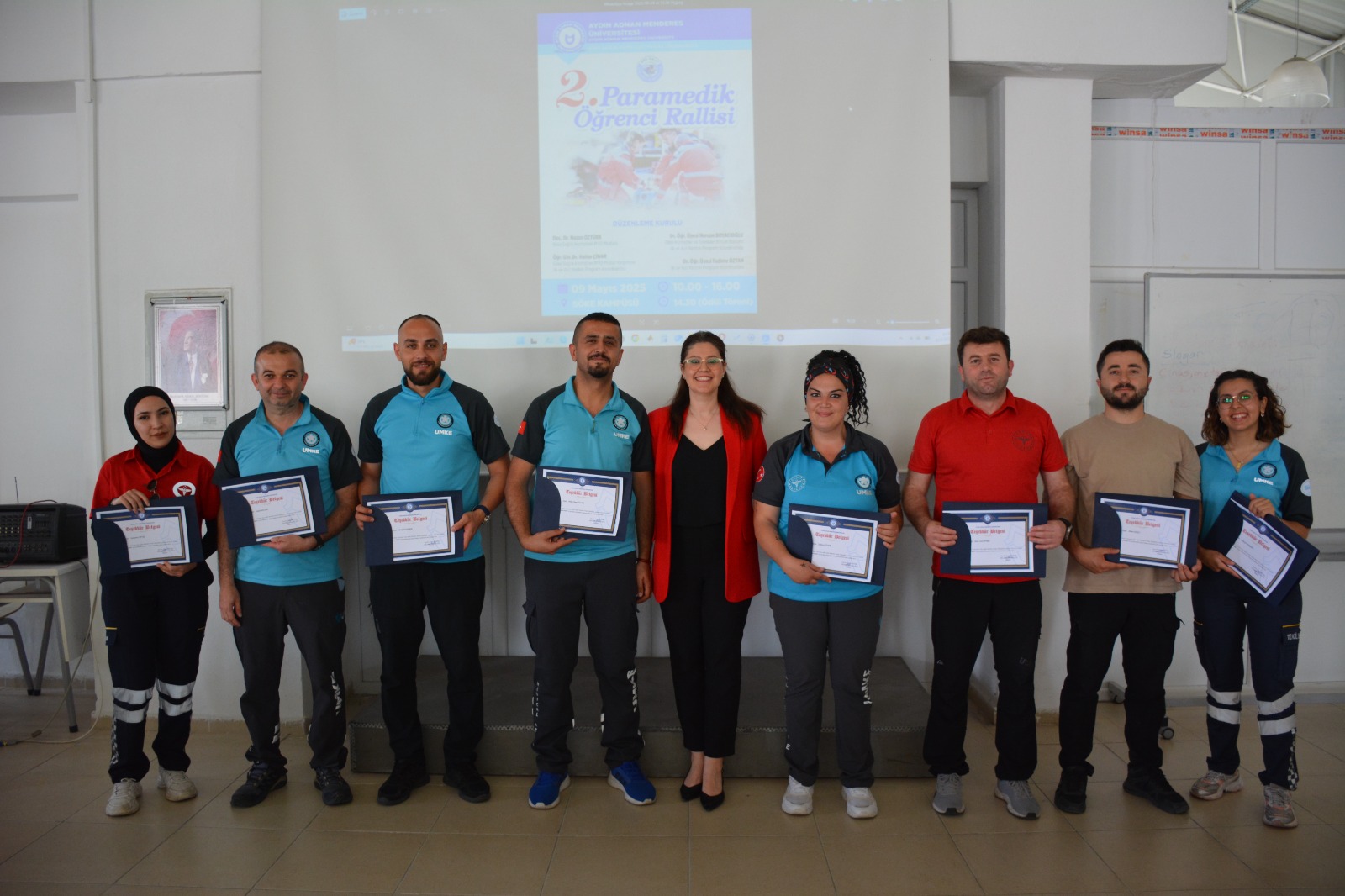 Üniversitemiz Söke Sağlık Hizmetleri Meslek Yüksekokulu (SHMYO) İlk ve Acil Yardım Programı öğretim elemanları Öğr. Gör. Dr. Halise ÇİNAR, Dr. Öğr. Üyesi Fadime ÖZTAN ve Dr. Öğr. Üyesi Nurcan BOYACIOĞLU tarafından düzenlenen, Aydın İl Sağlık Müdürlüğü’nün de destek verdiği 2. Paramedik Öğrenci Rallisi “ADÜRALLİ” etkinliği, 9 Mayıs 2025 tarihinde Söke Kampüsü’nde gerçekleştirildi.