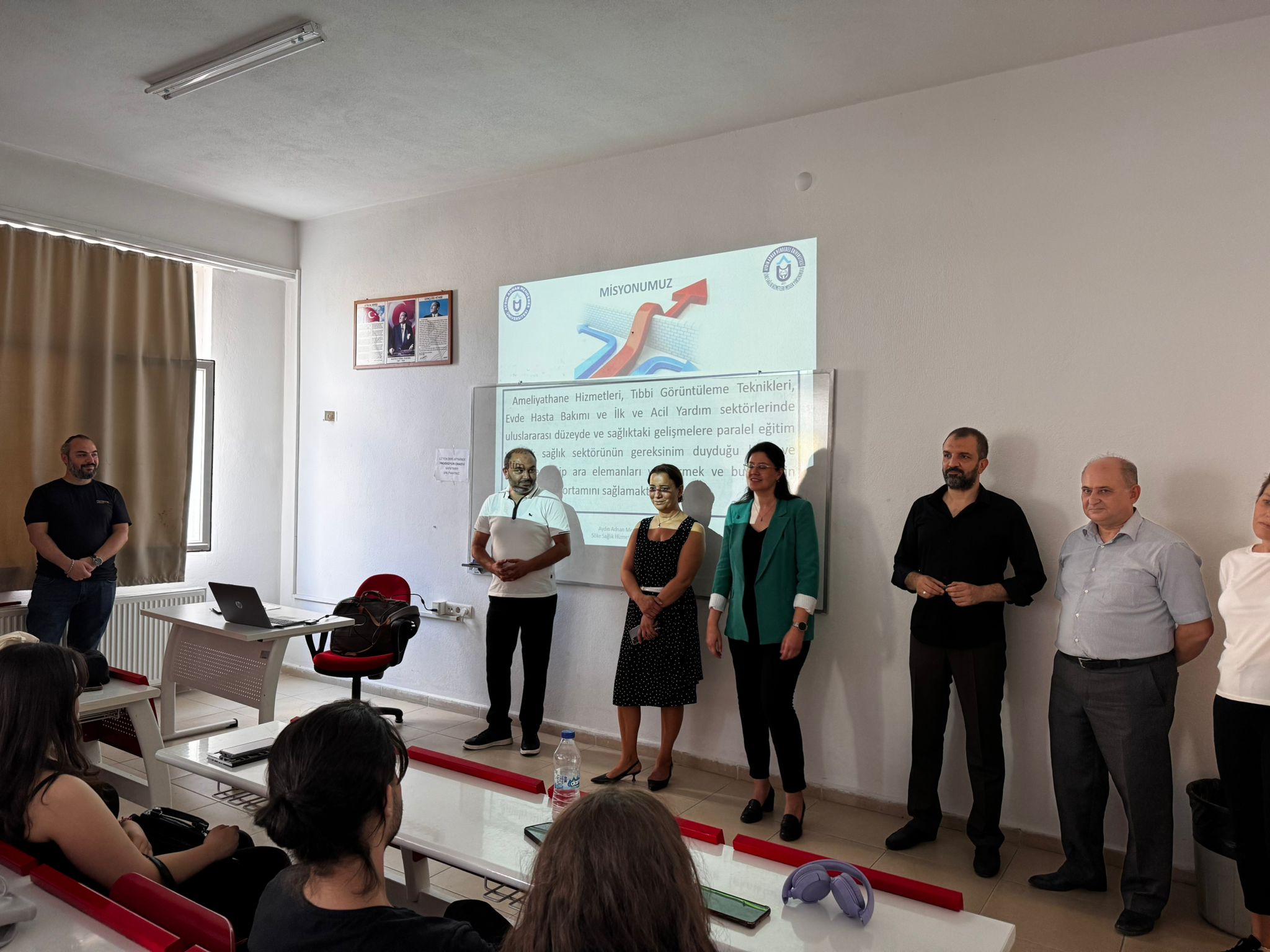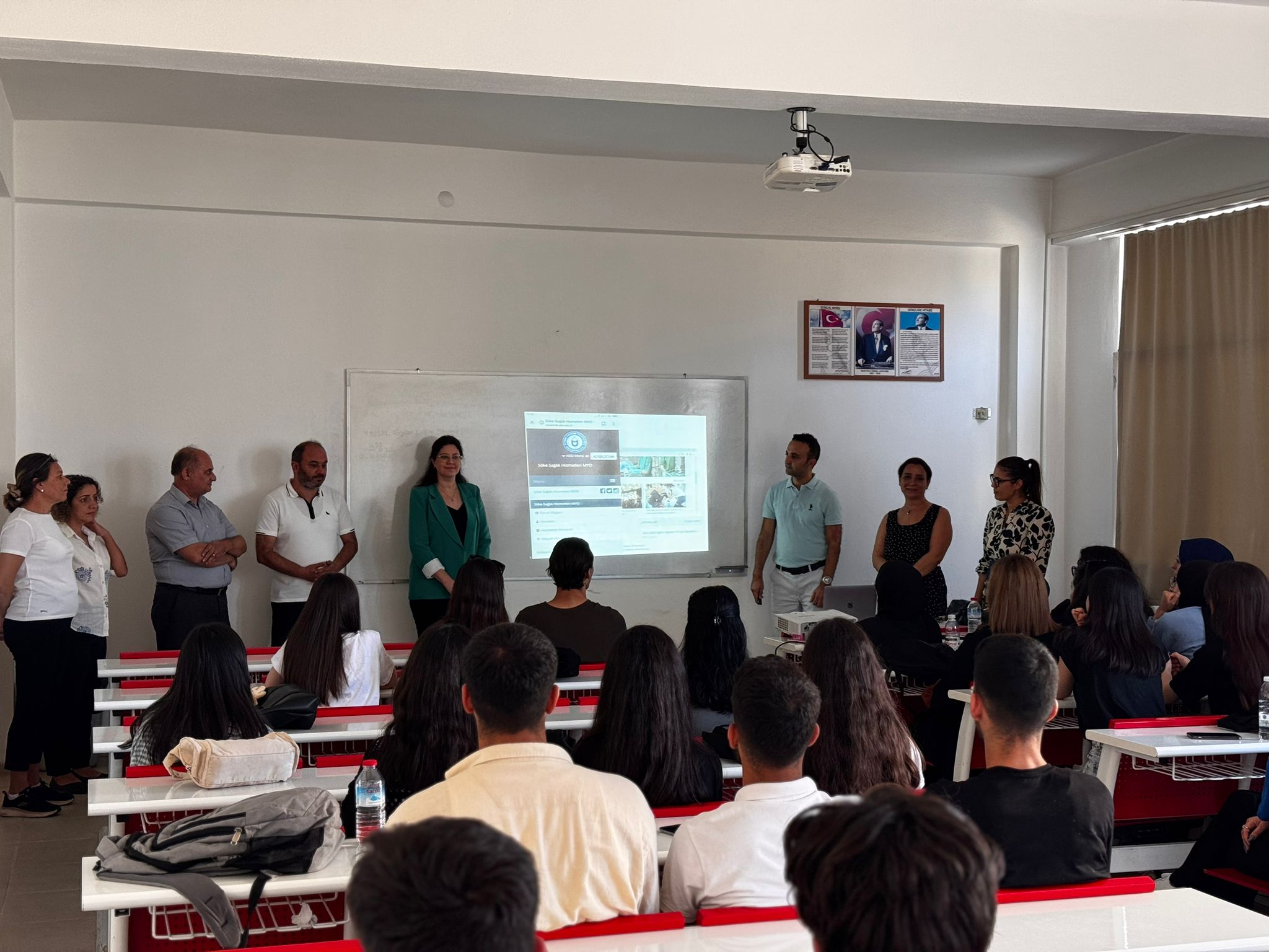 Oryantasyon programı kapsamında, İlk ve Acil Yardım, Ameliyathane Hizmetleri, Tıbbi Görüntüleme Teknikleri ve Evde Hasta Bakımı programlarında görevli birinci sınıf danışman öğretim elemanları tarafından yapılan sunumda, öğrencilere akademik ve idari personelin tanıtımı yapılmış; ders programları, uygulama alanları, eğitim-öğretim işleyişi, prosedür ve kurallar hakkında detaylı bilgi verilmiştir. Ayrıca, öğrenci değişim programları ve yüksekokulun bugüne kadar gerçekleştirdiği etkinliklere dair bilgilendirme de sunulmuştur.