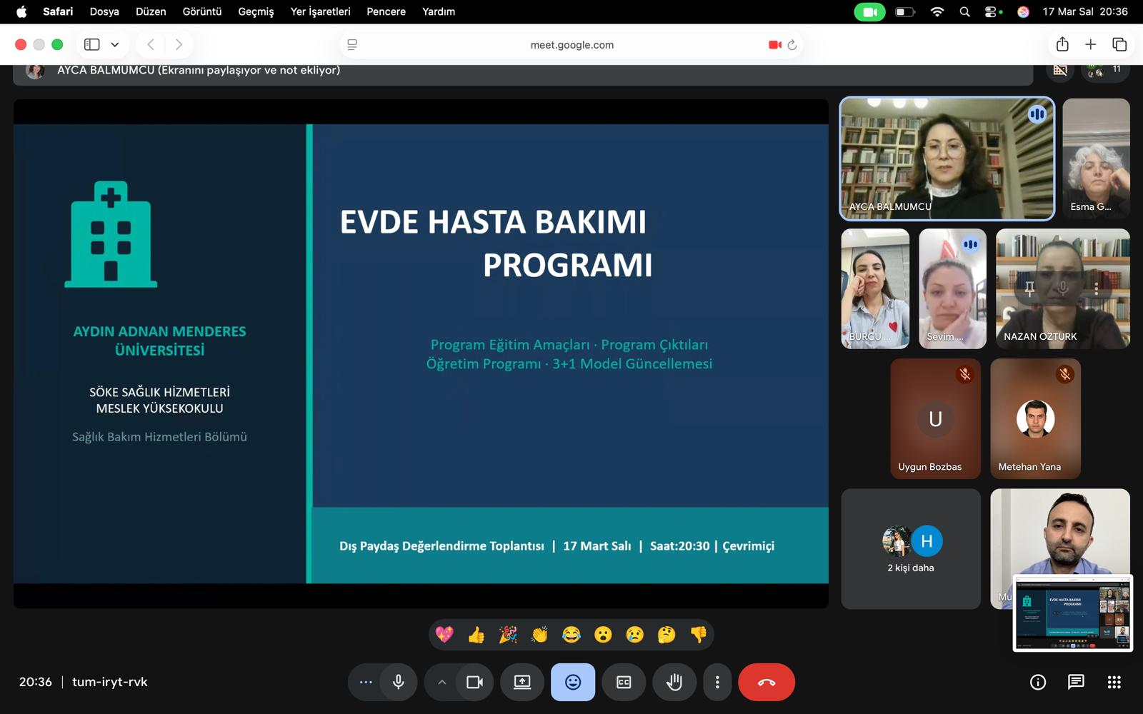 Aydın Adnan Menderes Üniversitesi Söke Sağlık Hizmetleri Meslek Yüksekokulu Sağlık Bakım Hizmetleri Bölümü Evde Hasta Bakımı Programı tarafından, programın eğitim-öğretim süreçlerinin geliştirilmesi, güncel gereksinimler doğrultusunda değerlendirilmesi ve dış paydaş görüşlerinin alınması amacıyla 17 Mart 2026 Salı günü çevrim içi dış paydaş toplantısı gerçekleştirildi. Toplantıda program eğitim amaçları, program çıktıları, öğretim programı ve 3+1 modeline geçiş kapsamında planlanan güncellemeler ele alındı.