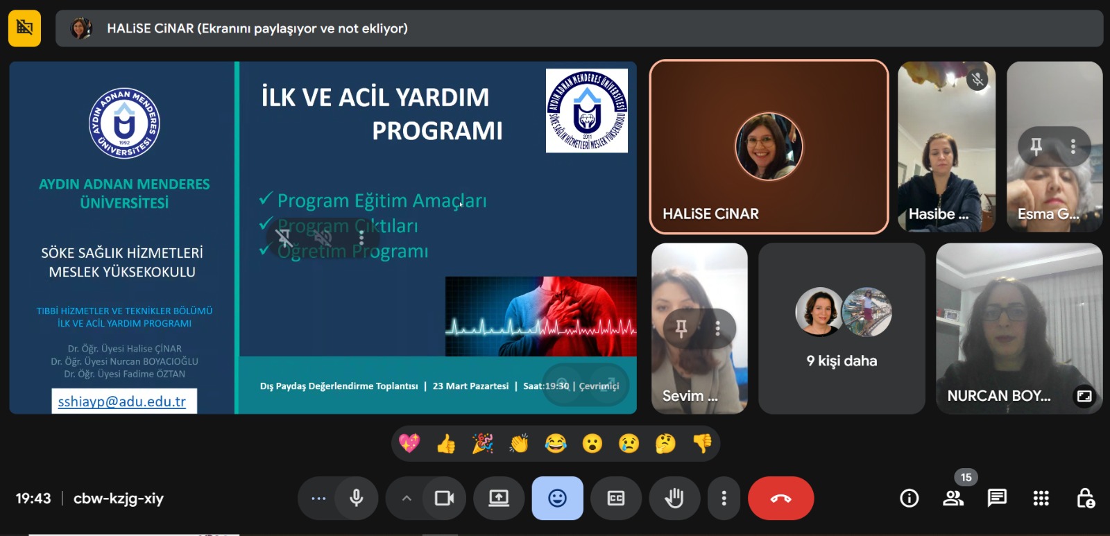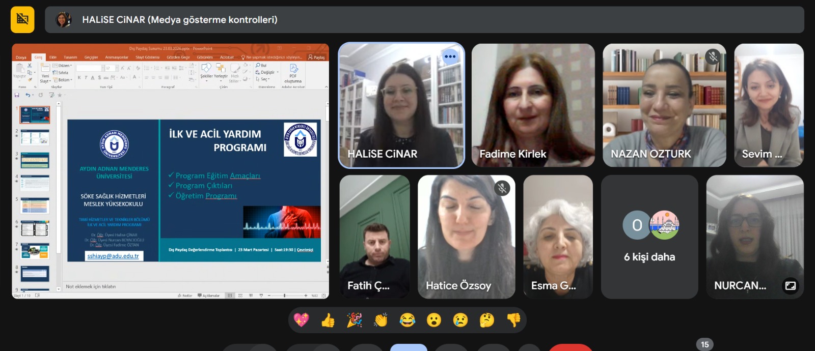 Aydın Adnan Menderes Üniversitesi Söke Sağlık Hizmetleri Meslek Yüksekokulu Tıbbi Hizmetler ve Teknikler Bölümü İlk ve Acil Yardım Programı tarafından, eğitim-öğretim süreçlerinin geliştirilmesi, güncel gereksinimler doğrultusunda değerlendirilmesi, kalite güvencesi çalışmalarının güçlendirilmesi ve dış paydaş görüşlerinin alınması amacıyla 23 Mart 2026 Pazartesi günü saat: 19.30'da çevrim içi dış paydaş toplantısı gerçekleştirildi.