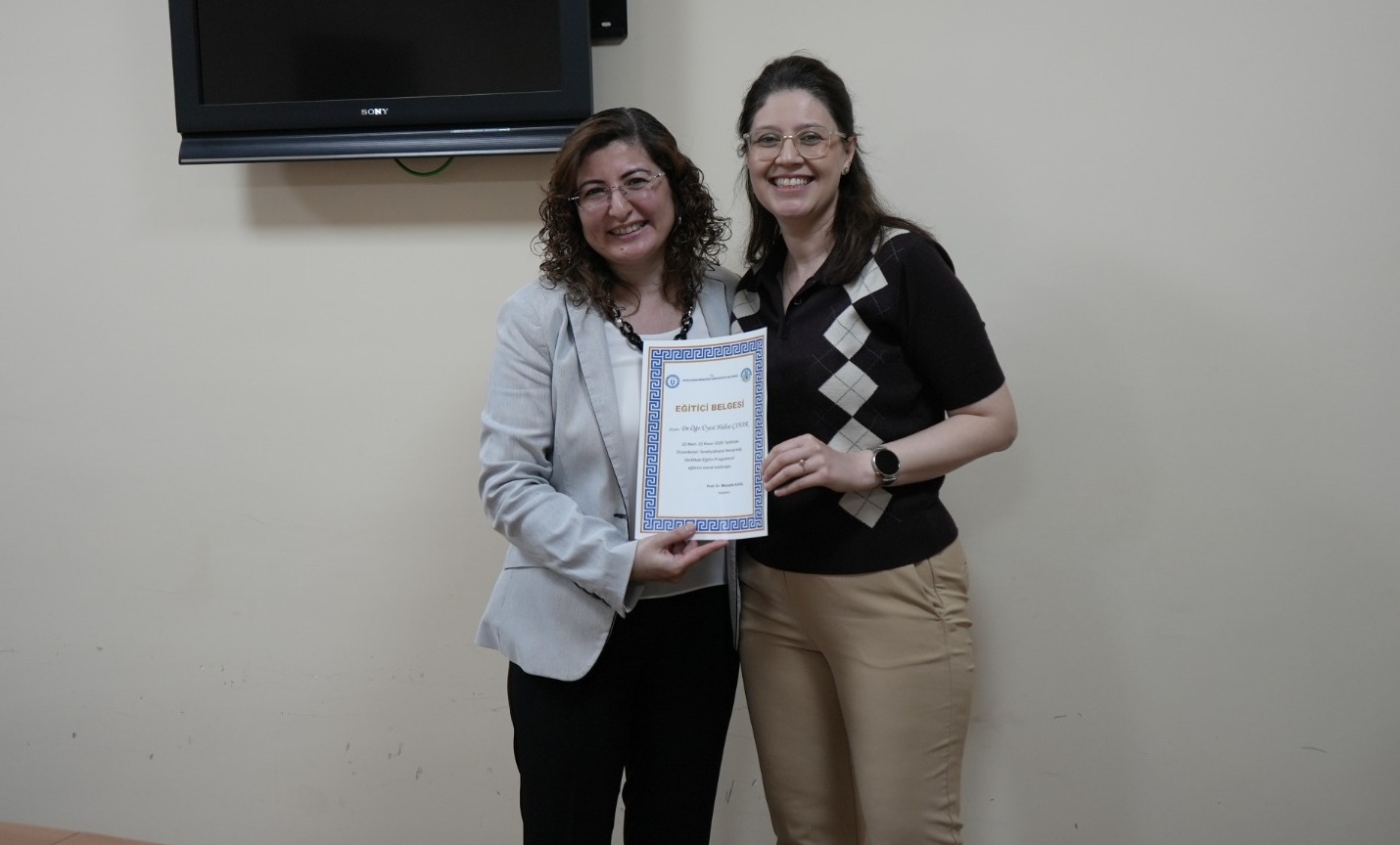 Program sonunda sertifika töreninde, eğitici olarak görev alan öğretim üyelerine katkılarından dolayı teşekkür ve eğitici belgeleri takdim edildi.