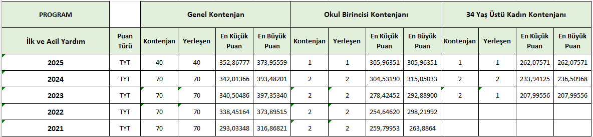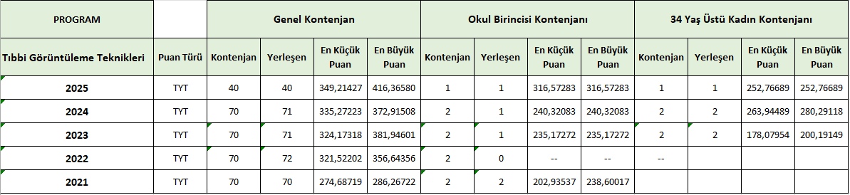 Genel Kontenjan: kontenjan, yerleÅŸen sayısı, en küçük ve en büyük puan,