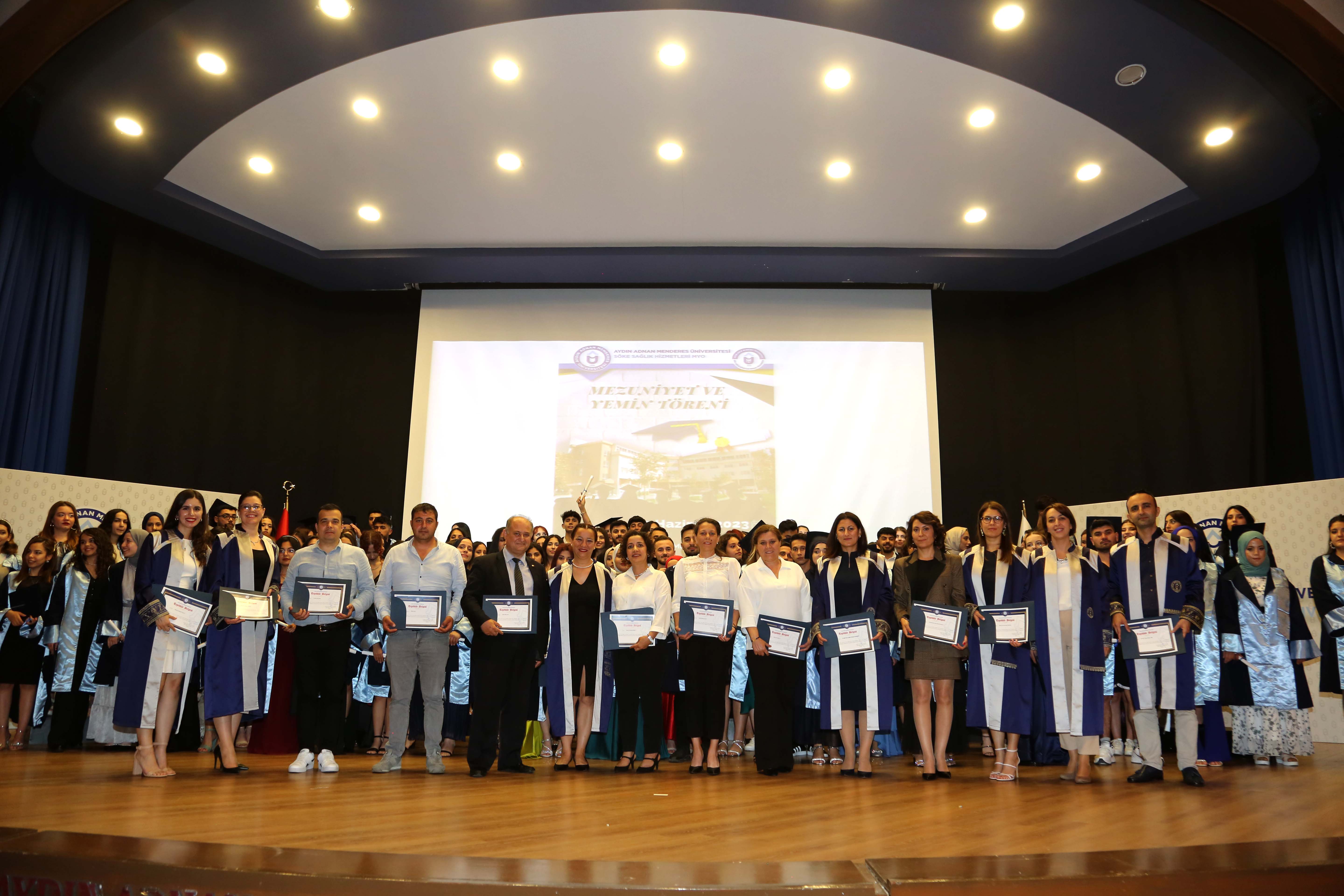 Programa; Üniversitemiz Rektör Yardımcısı Prof. Dr. Nuh Kılıç, Söke SaÄŸlık Hizmetleri MYO Müdürü Dr. ÖÄŸr. Üyesi Nazan Öztürk, Aydın SaÄŸlık Hizmetleri MYO Müdürü Doç. Dr. Gül Öznur Karabıçak, Söke SaÄŸlık Hizmetleri MYO Müdür Yardımcıları ÖÄŸr. Gör. Halise Çinar ve Dr. ÖÄŸr. Üyesi Gülfer DoÄŸan Pekince, akademik ve idari personel ile öÄŸrenciler ve aileleri katıldı.
