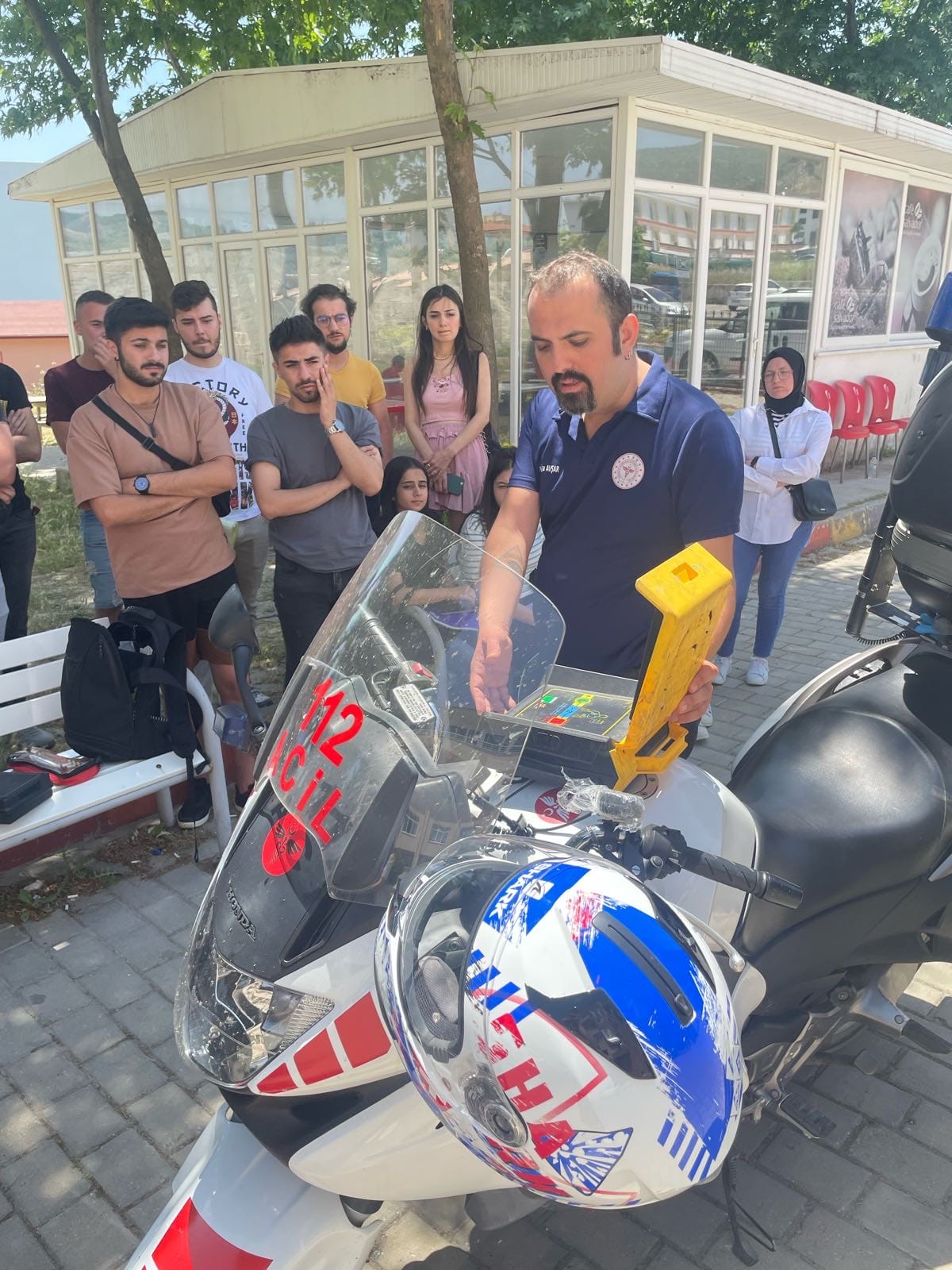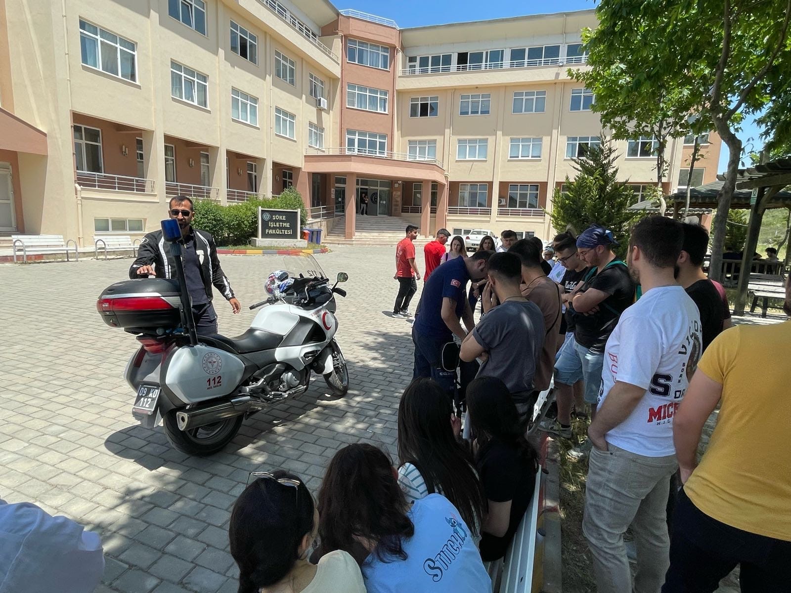 Aydın Adnan Menderes Üniversitesi Söke SaÄŸlık Hizmetleri Meslek Yüksekokulu İlk ve Acil Yardım Programı ikinci sınıf öÄŸrencilerine Aydın İl SaÄŸlık MüdürlüÄŸü’nde görevli motosiklet ambulans kullanan Dr. Dalga AVÅžAR tarafından Söke SaÄŸlık Hizmetleri Meslek Yüksekokulu bahçesinde 24 Mayıs 2022 tarihinde motosiklet ambulansın tanıtımı yapıldı. Motosiklet ambulansın kimler tarafından, nasıl ve ne ÅŸekilde kullanılabileceÄŸi, nerelerde motosiklet ambulansın kullanılabildiÄŸi, motosiklet ambulansta bulunan ekipmanlar hakkında detaylı bilgi verilmiÅŸtir. Motosiklet ambulansın özellikle trafiÄŸin çok yoÄŸun olduÄŸu, trafiÄŸe kapalı yollar ve kara ambulansının giremeyeceÄŸi dar sokaklar, park, bahçe gibi açık alanlardaki vakalara görevlendirildikleri hızlı bir ÅŸekilde müdahale ettikleri belirtilmiÅŸtir.