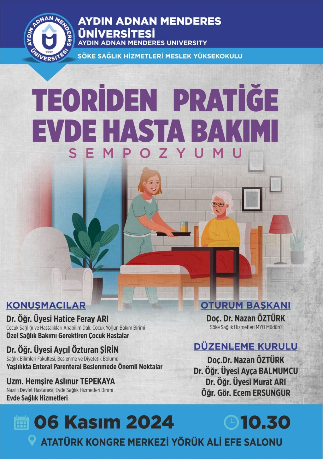 Oturum başkanlığını Söke SHYMO Müdürü Doç. Dr. Nazan Öztürk’ün yaptığı sempozyumda, Tıp Fakültesi Çocuk Sağlığı ve Hastalıkları Ana Bilim Dalı Dr. Öğr. Üyesi Hatice Feray Arı, Sağlık Bilimleri Fakültesi Beslenme ve Diyetetik Bölümü Dr. Öğr. Üyesi Ayçıl Özturan Şirin, Nazilli Devlet Hastanesi Evde Sağlık Hizmetleri Biriminde görevli Uzm. Hemşire Aslınur Tepekaya konuşmacı olarak yer aldı.