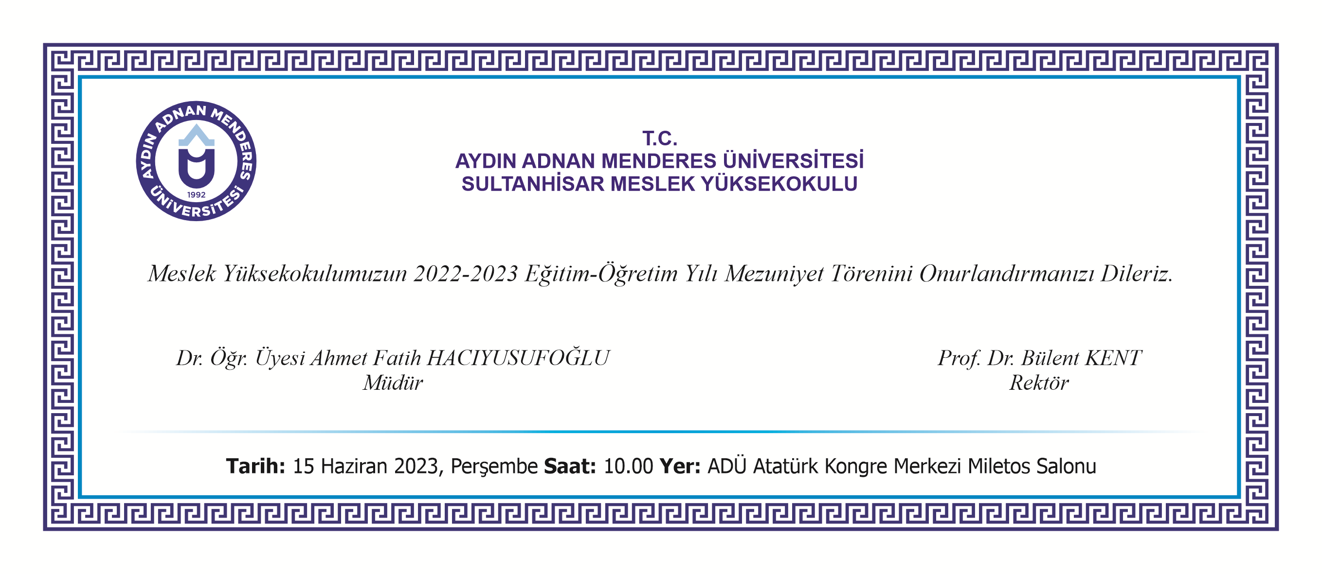 NOT: Öğrencilerimiz mezuniyet cüppelerini, Öğrenci İşleri Ofisimizden temin edebilirler.