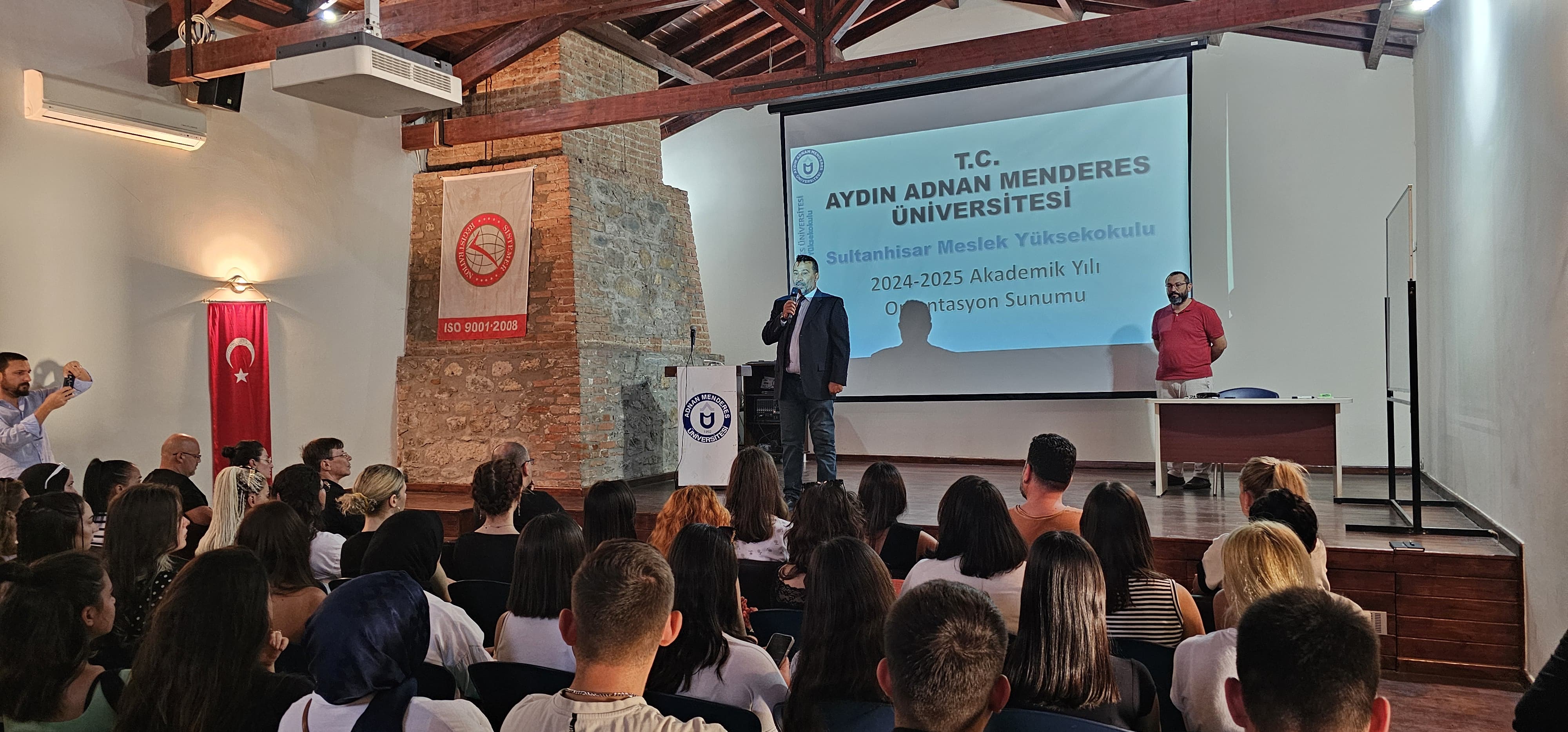 Üniversitemiz Sultanhisar Meslek Yüksekokulunda 2024 – 2025 Eğitim Öğretim yılında yeni kayıt yaptıran öğrencilerimize yönelik 10 Ekim 2024 Perşembe günü Sultanhisar Meslek Yüksekokulu Ahmet Hakkı Balcıoğlu Yerleşkesi Konferans Salonunda "Oryantasyon Eğitimi" gerçekleştirildi.