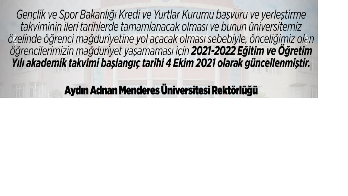 ÜNİVERSİTEMİZİN 2021-2022 EĞİTİM ÖÄžRETİM YILI AKADEMİK TAKVİMİ BAÅžLANGIÇ TARİHİ: 04/10/2021 OLARAK GÜNCELLENMİŞTİR.