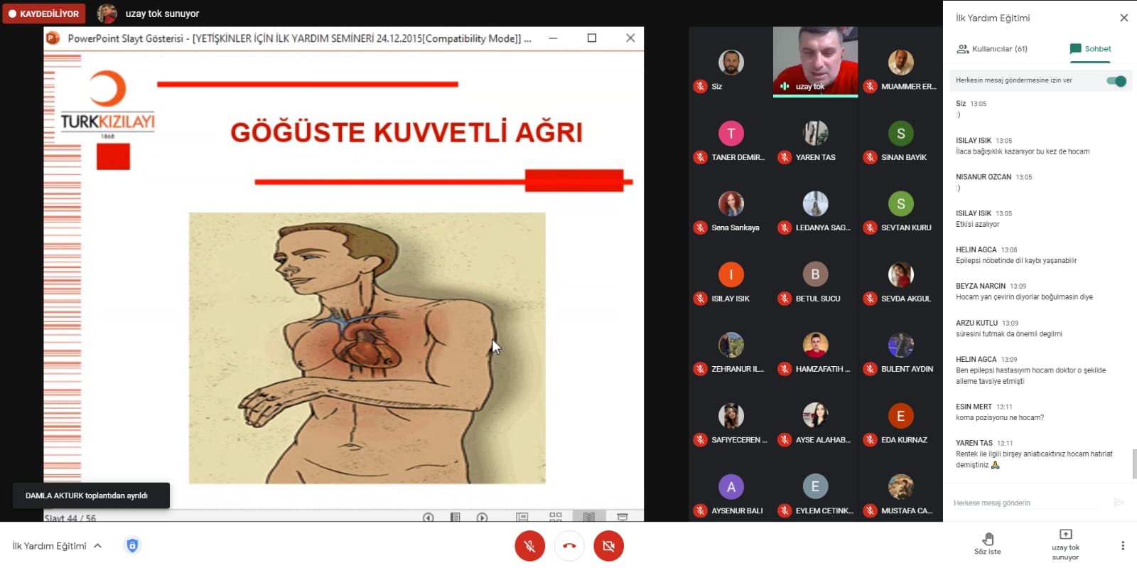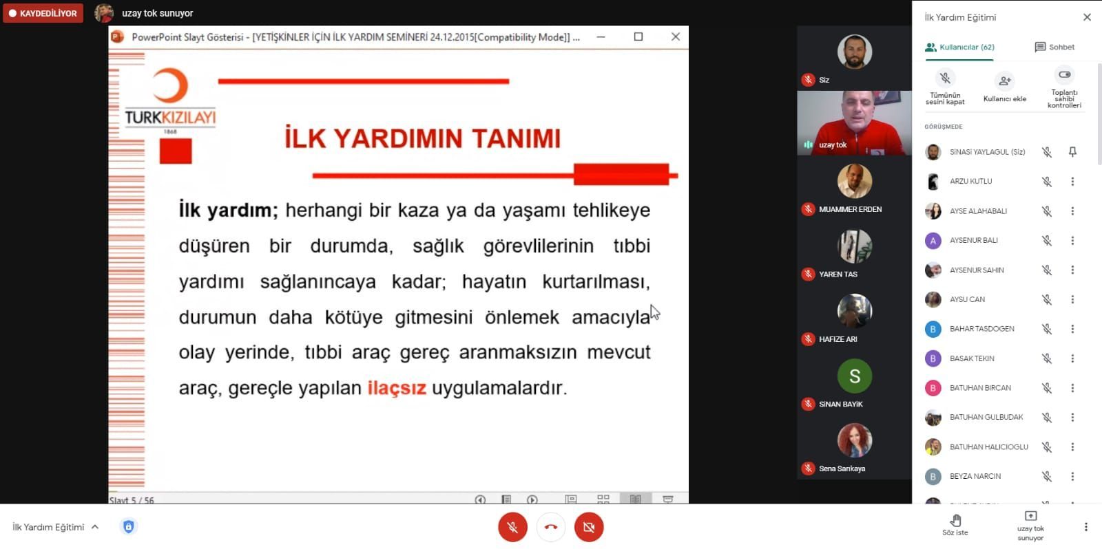 Türk Kızılay Aydın İlk Yardım Eğitim Merkezi Mesul Müdürü Sayın Uzay TOK tarafından Google Meet üzerinden 25 Mart 2021 tarihinde, Perşembe günü saat 12.15'te Meslek Yüksekokulumuz personeline ve öğrencilerimize yönelik "İlk Yardım Semineri" düzenlendi.