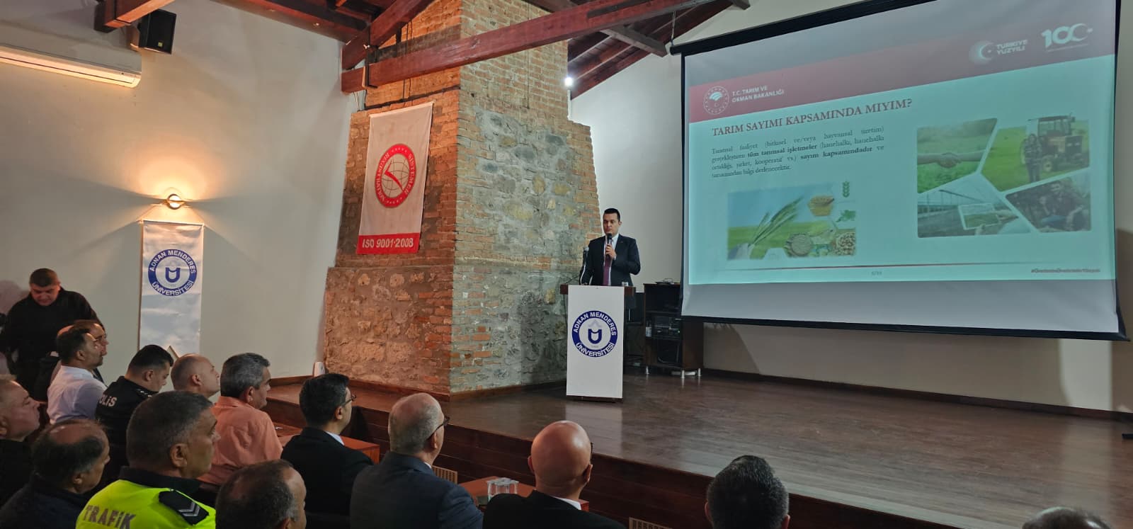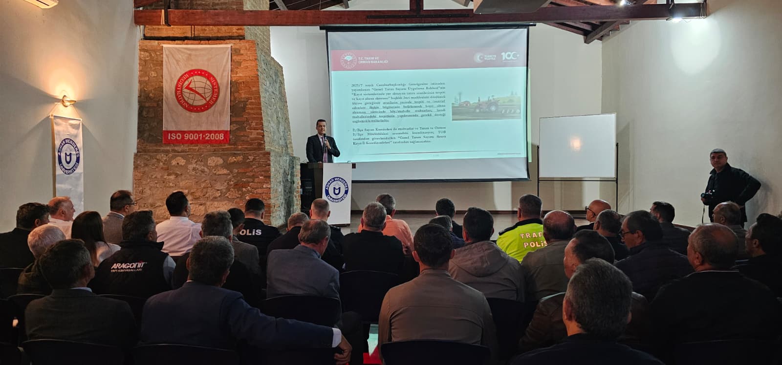 Saygı DuruÅŸu ve İstiklal Marşının okunmasıyla baÅŸlanan toplantıda Aydın Tarım ve Orman İl MüdürlüÄŸü Koordinasyon ve Tarımsal Veriler Åžube Müdür Vekili Mustafa Özsemerci bir sunum gerçekleÅŸtirdi.