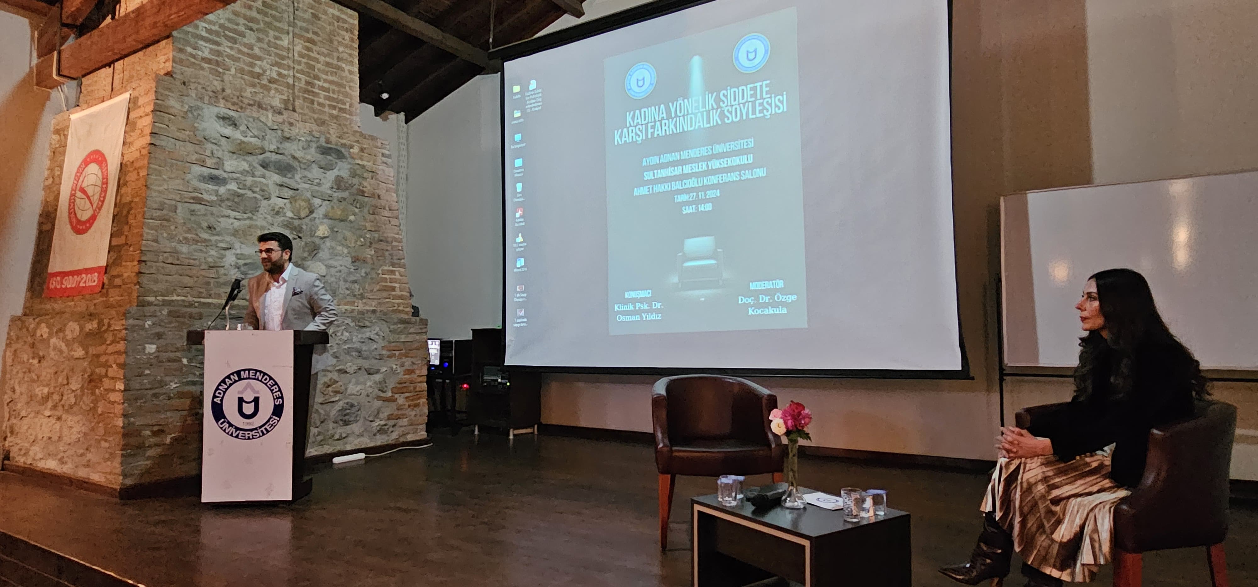 27.11.2024 çarşamba günü Sultanhisar Meslek Yüksekokulu Ahmet Hakkı Balcıoğlu Konferans Salonunda Doç. Dr. Özge KOCAKULA moderatörlüğünde Klinik Psikolog Dr. Osman YILDIZ’ ın katılımıyla “Kadına Yönelik Şiddete Karşı Farkındalık ve Mücadele” konulu söyleşi gerçekleştirildi.