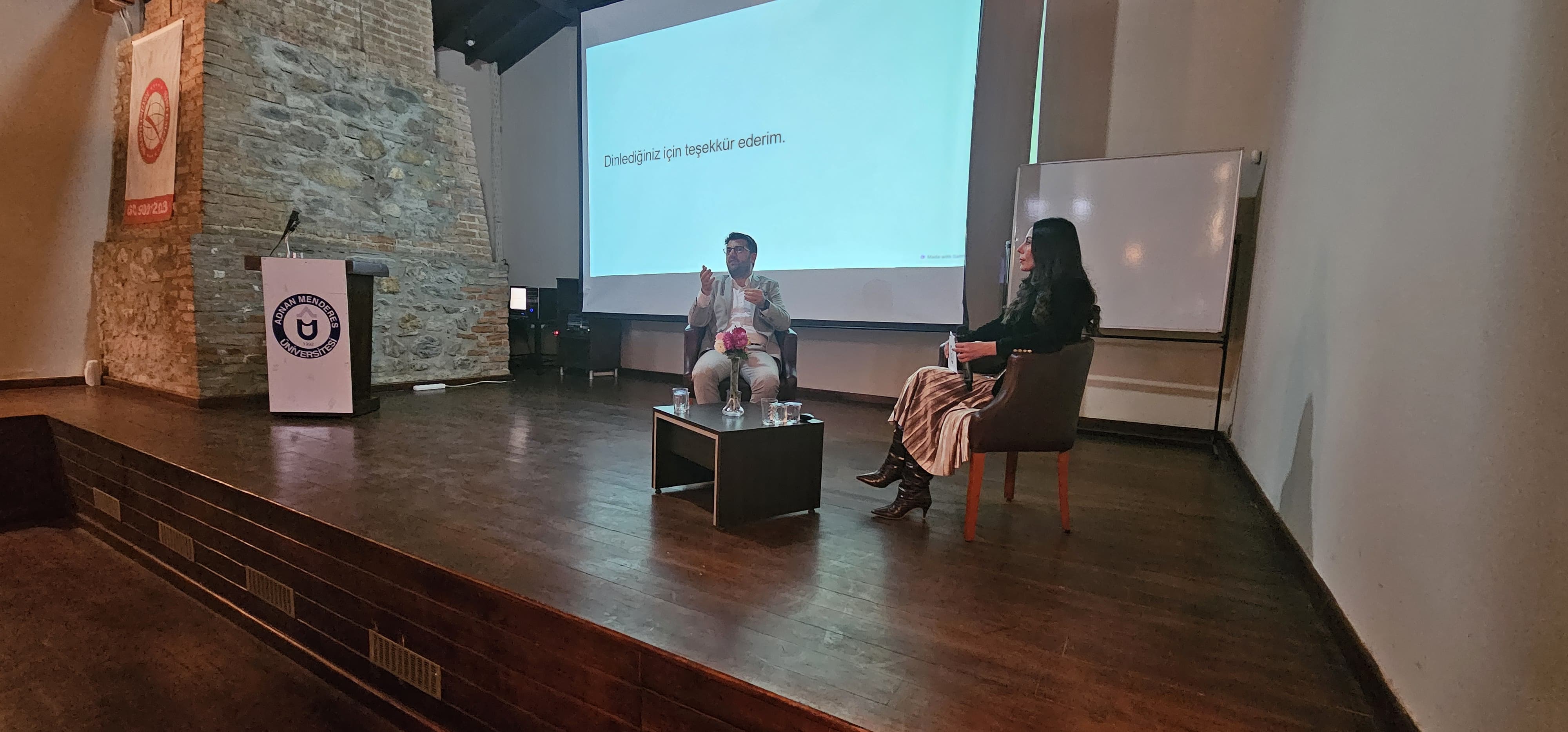 Moderatörlüğünü Doç. Dr. Özge KOCAKULA’ nın üstlendiği söyleşi Klinik Psikolog Dr. Osman YILDIZ’ ın ‘Kadına Yönelik Şiddete Karşı Farkındalık ve Mücadele’ yi anlatan sunumuyla devam etti. Sunumda; şiddete maruz kalan kadınların hayatımızdaki yeri, önemi ve hayata kattığı değerlerin yanı sıra, eğitimde kadının rolü, ekonomik özgürlüğü, üreten kadın için yapılabilecek girişimler hakkında bilgiler verildi.