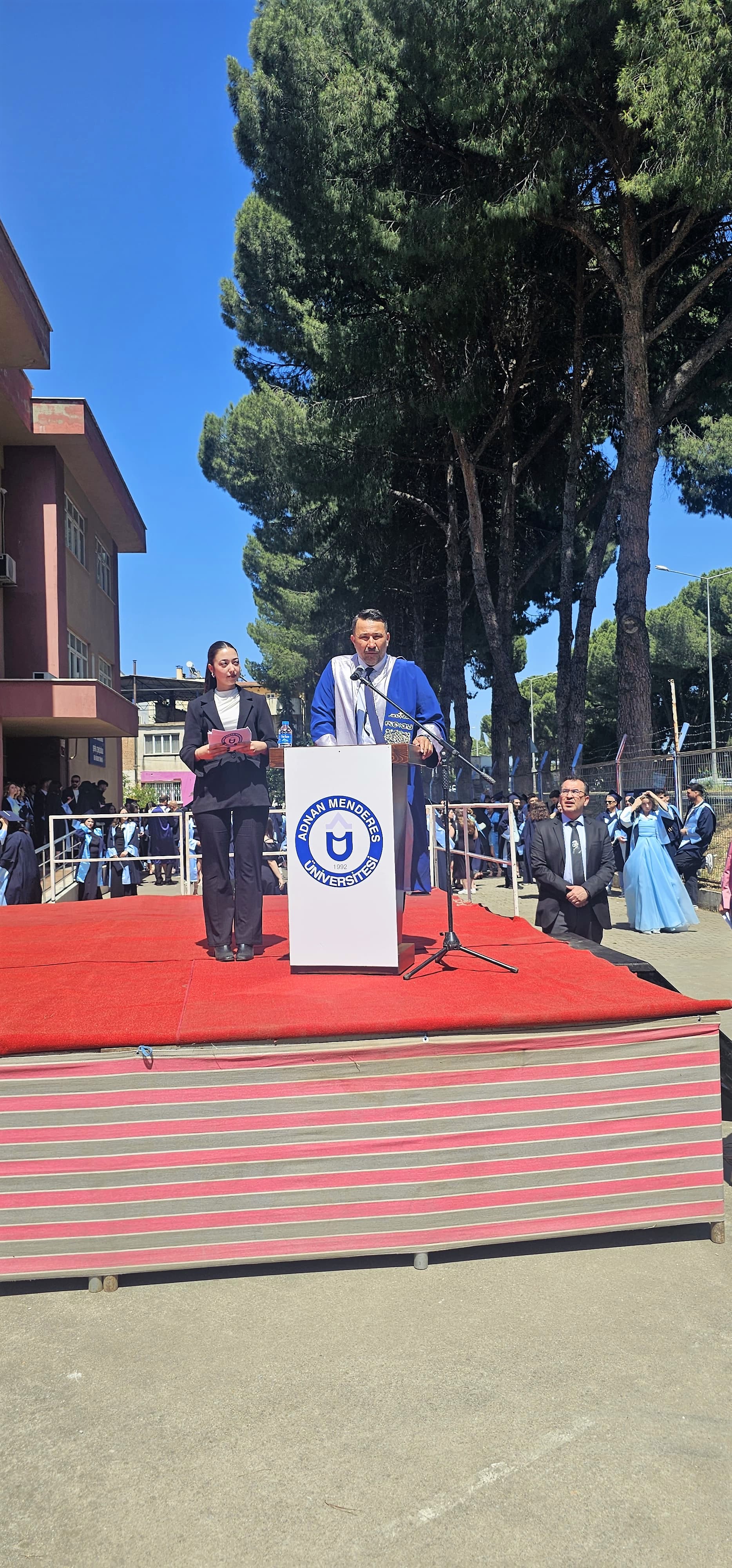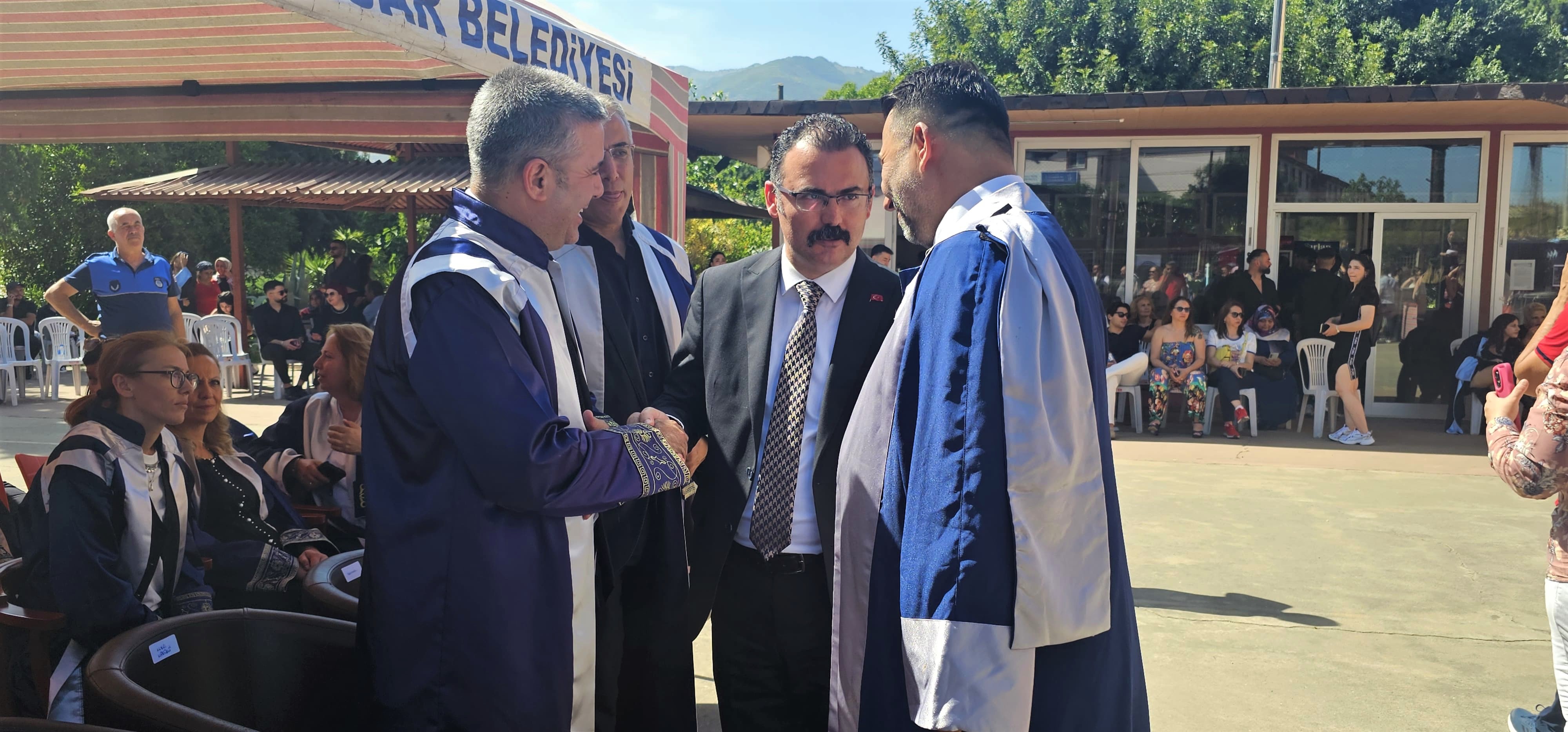 Mezuniyet Törenine; Sultanhisar Kaymakamı Ali Ekber Ateş, Üniversitemiz Rektör Yardımcıları Prof. Dr. Erkan Salan ve Prof. Dr. Cengiz Özarslan, Belediye Başkanı Osman Yıldırımkaya, İlçe Jandarma Komutanı Bekir Göçmen, Sultanhisar MYO. Müdürü Prof. Dr. Ahmet Kılıçkan, Ziraat Fakültesi Dekanı Prof. Dr. Mustafa Sürmen, Rektör Danışmanı Dr. Öğr. Üyesi Fatih Hacıyusufoğlu, Nazilli MYO. Müdürü Prof. Dr. Mustafa Özçağ, Koçarlı MYO. Müdürü Dr. Öğr. Üyesi Taner Akbaş, Bozdoğan MYO. Müdürü Dr. Öğr. Üyesi Nurdanur Tavlan Soydan, İlçe Milli Eğitim Müdürü Erdinç Güner, İlçe Tarım ve Orman Müdürü Dr. Taner Bozbek, Yenipazar İlçe Tarım ve Orman Müdürü Erkan Kasırga, İlçe Devlet Hastanesi Başhekimi Dr. Emre Demirel, İlçe Tapu Müdürü Ahmet Albay, İlçe Müftüsü Yakup Şener, Atça Esnaf ve Sanatkârlar Odası Başkanı İsa Durak ve diğer kamu kurum kuruluşları Daire Amirleri ile Akademik, idari personel, öğrenciler ve aileleri katıldı.