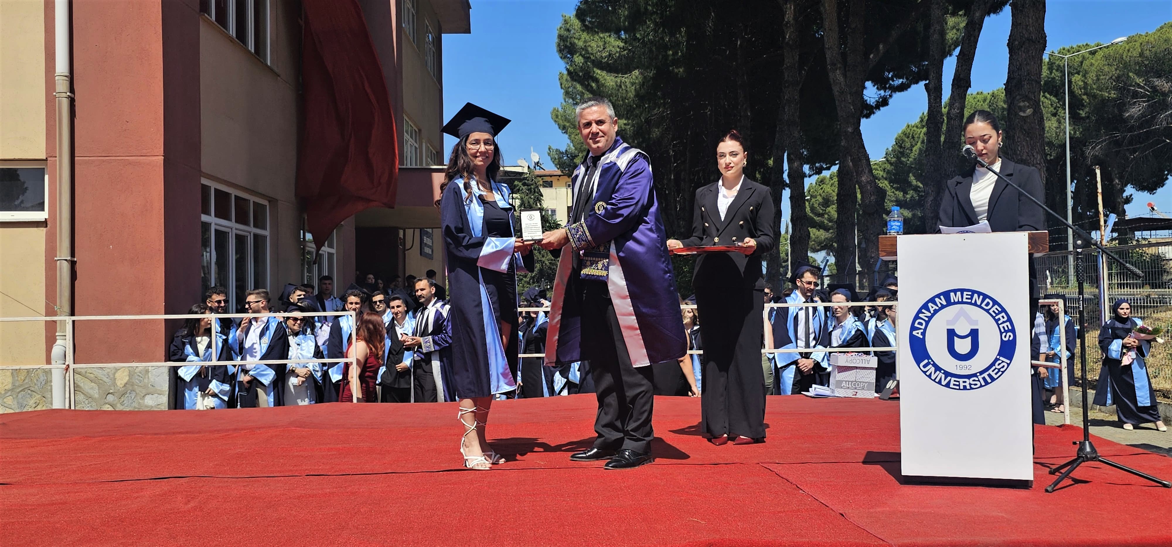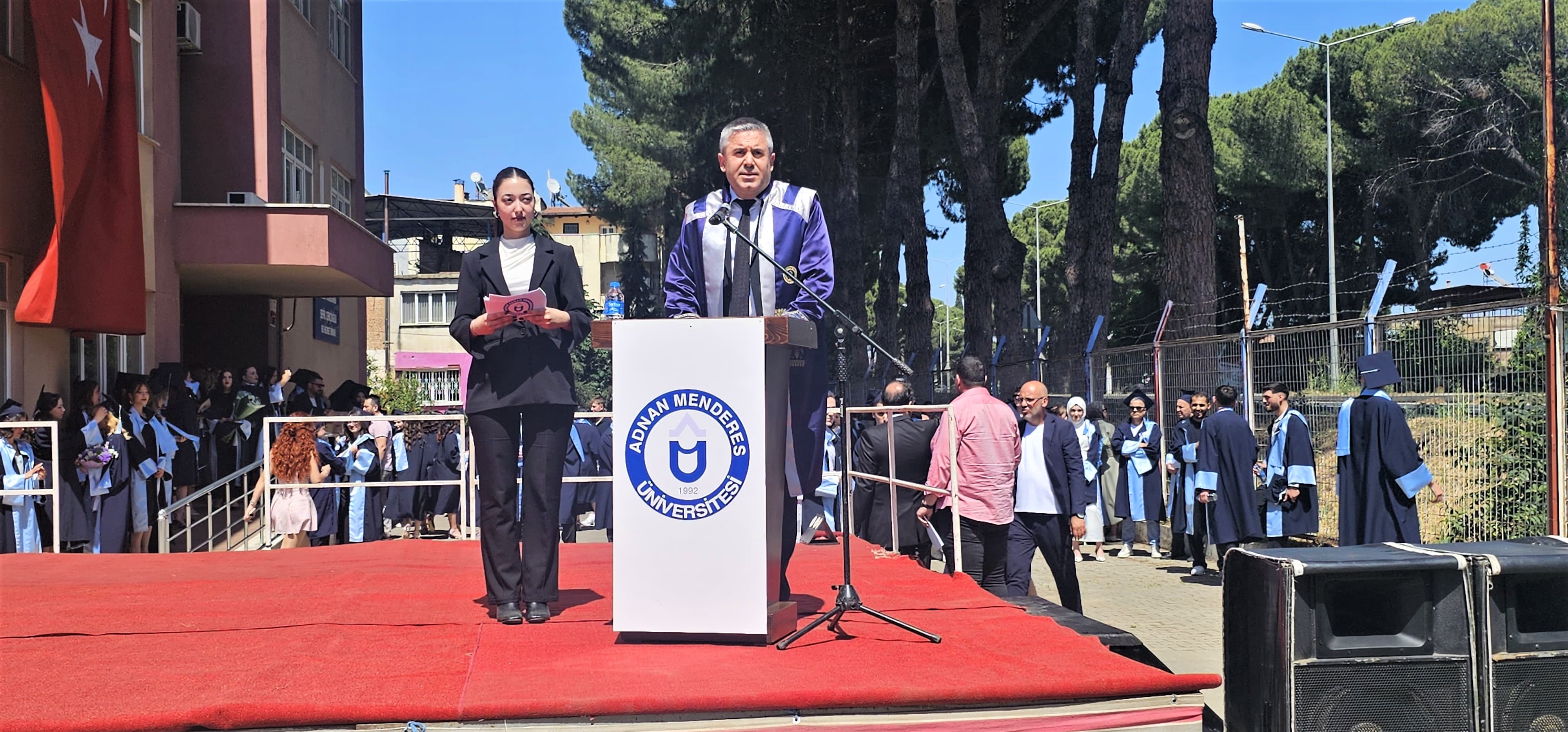 Mezuniyet Töreni, Saygı Duruşu ve İstiklal Marşı’nın okunmasının ardından, Sultanhisar MYO. Okul Birincisi, Bitki Koruma Programı mezunu Vildan Uğurlu bir konuşma gerçekleştirdi. Konuşmasında, katkılarından dolayı başta ailesi, Sultanhisar MYO. Yönetimi ve Öğretim Üyelerine teşekkür etti.